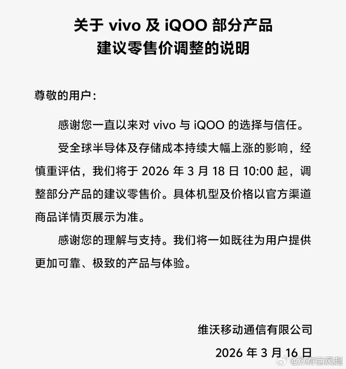 vivo宣布涨价也上热搜了啊,下一个是谁?