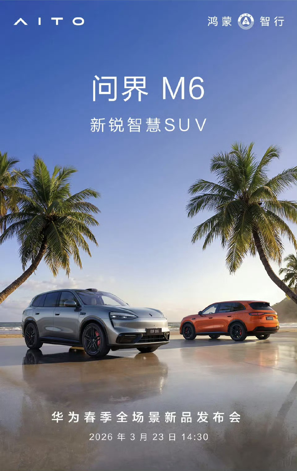 华为春季发布会定档3月23日赶在北京车展前,各家都要把主菜端出来了鸿蒙智行上半年几款重磅车型问界M6,尚界Z7/Z7T,享界S9焕新你最期待哪辆车?