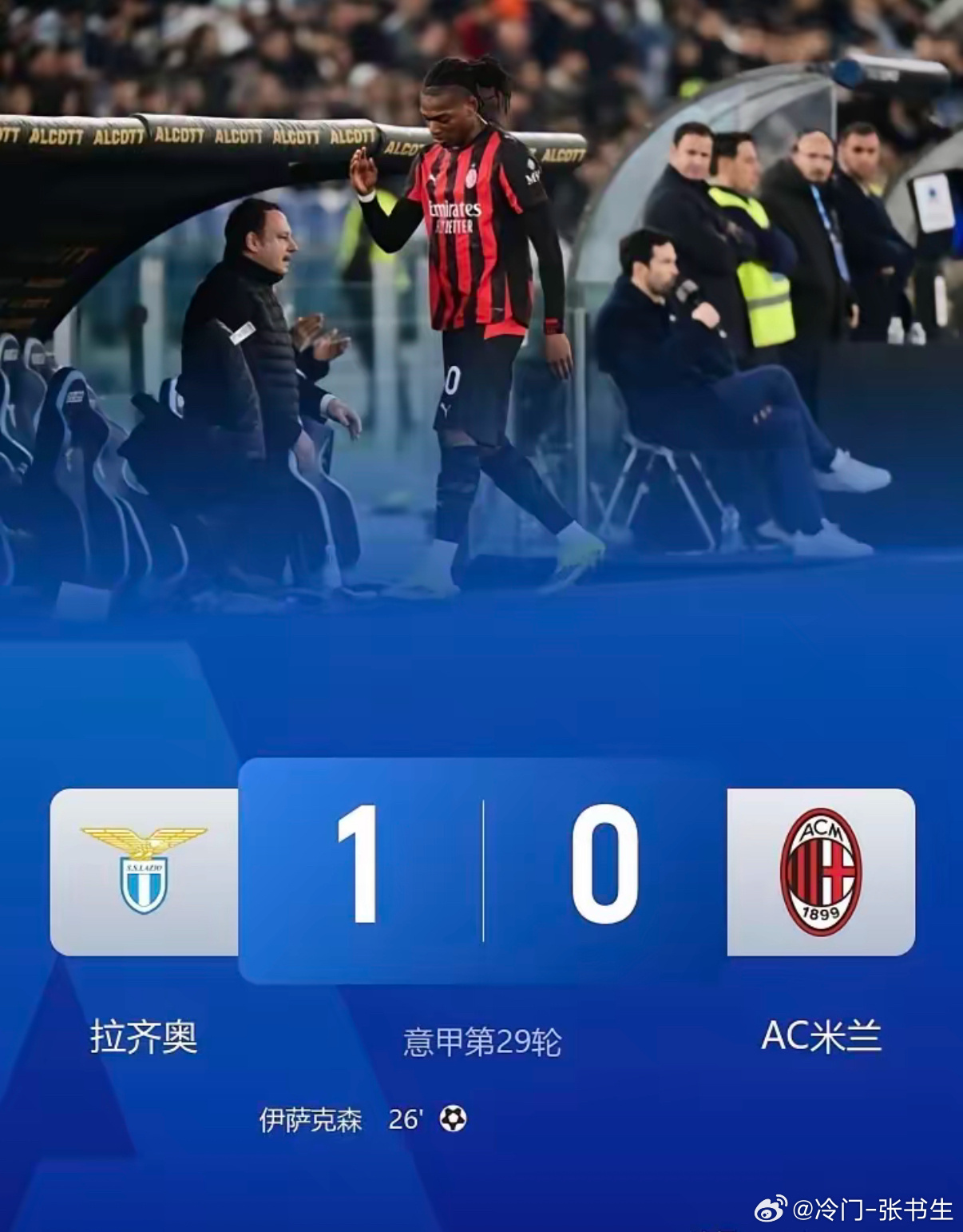 国际米兰扩大差距,AC米兰球迷破防的一天!国际米兰继上轮补时阶段点球被无视之后,本轮主场再次被裁判连续误判。就在AC米兰满心期待击败拉齐奥将与国际米兰的差距缩小到5分的时候,被萨里和拉齐奥球员反手就是一记耳光,告诉他们如何堂堂正正做人。国际米兰在本轮遭遇不利判罚的情况下反而将领先优势由7分扩大至8分。AC米兰球迷赛后破防了,阿囧和勤笑公莱奥都是它们的攻击目标。足球意甲拉齐奥1比0AC米兰