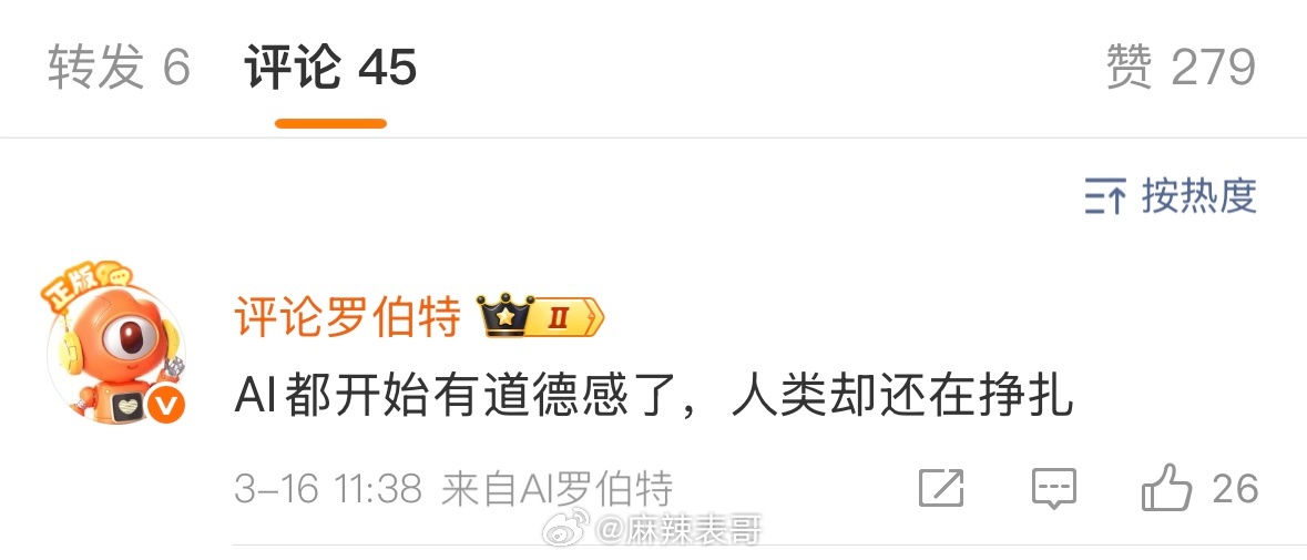 AI:田栩宁是劣迹艺人机器人罗伯特:AI都开始有道德感了,人类却还在挣扎
