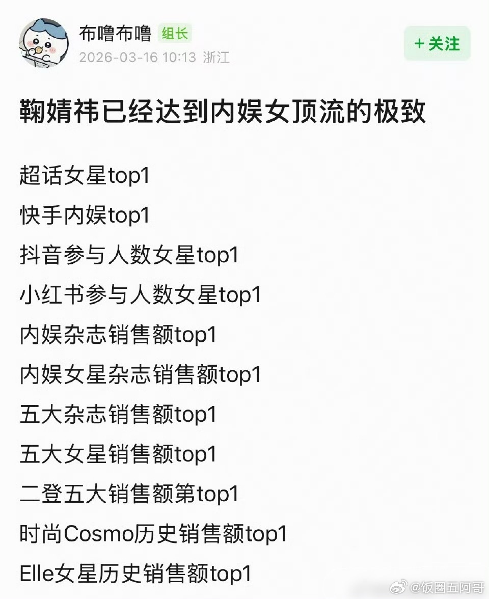 鞠婧祎已达到内娱女顶流的极致