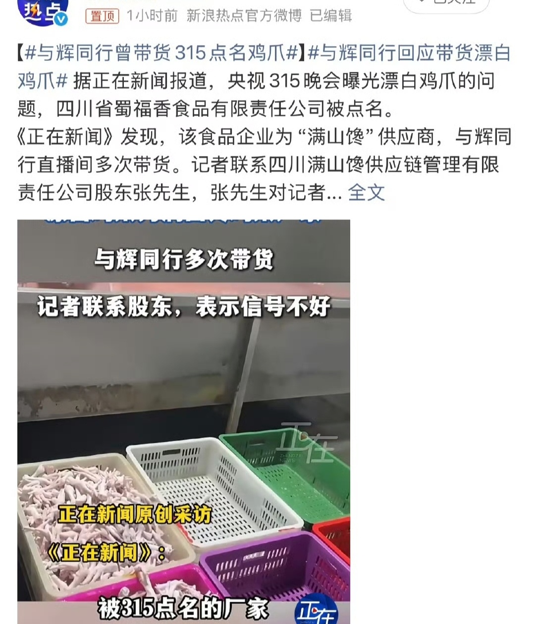 315蜀福香双氧水鸡爪的事,怎么还有人不分青红皂白往与辉同行和董宇辉身上泼脏水啊?先把话说死:人家直播间带的鸡爪,和315曝光的问题货,根本不是同一条生产线、不是同一个批次!