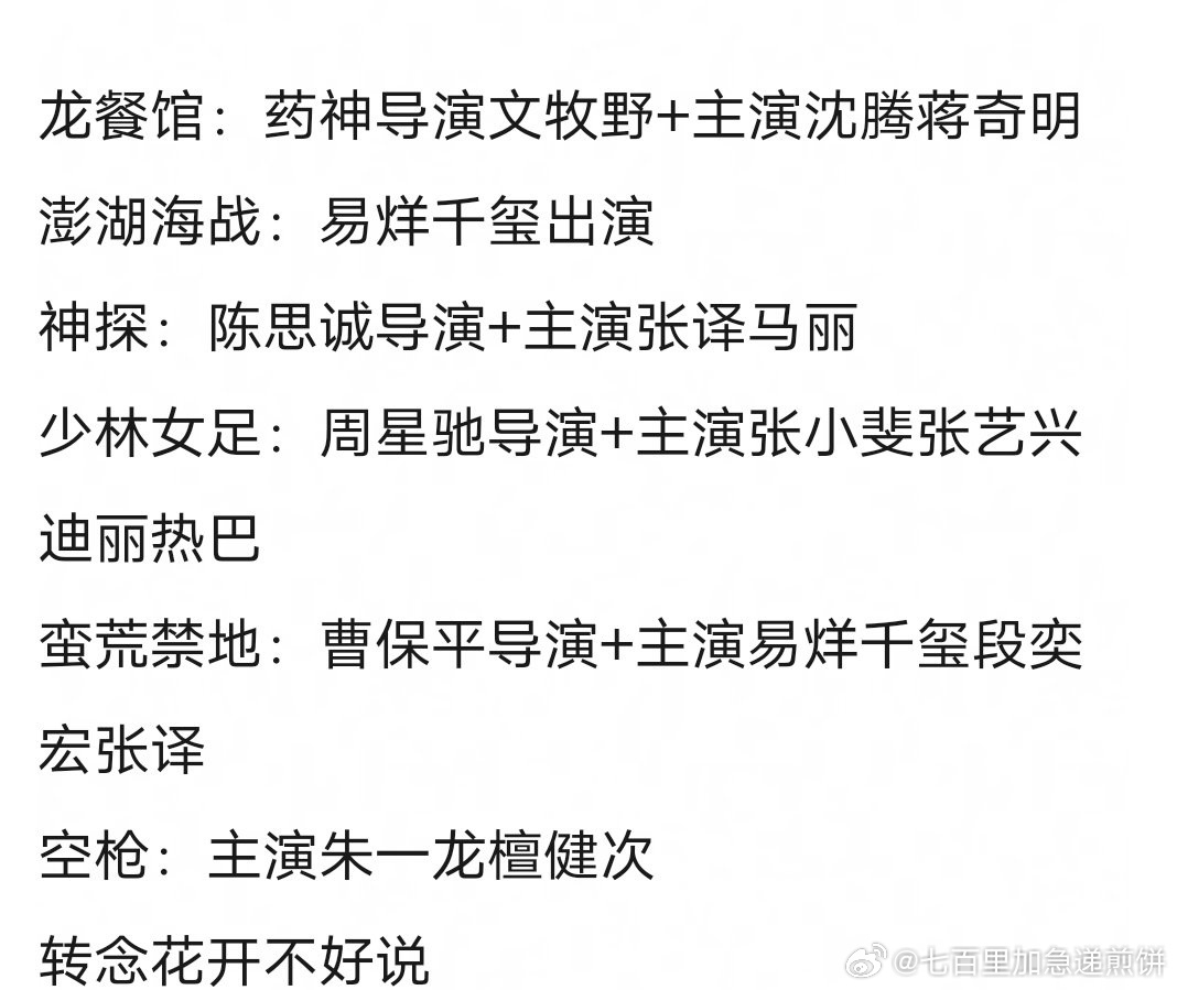 🍉 2026暑期档还挺热闹,你期待哪一部沈腾《欢迎来龙餐厅》易烊千玺《蛮荒禁地》王学圻 易烊千玺《澎湖海战》朱一龙 檀健次《空枪》张译 马丽《神探之痕迹》张小斐 张艺兴 迪丽热巴《少林女足》 刘德华 谢霆锋《怒火漫延》白敬亭、魏翔《特立独行》《三国第一部:争洛阳》