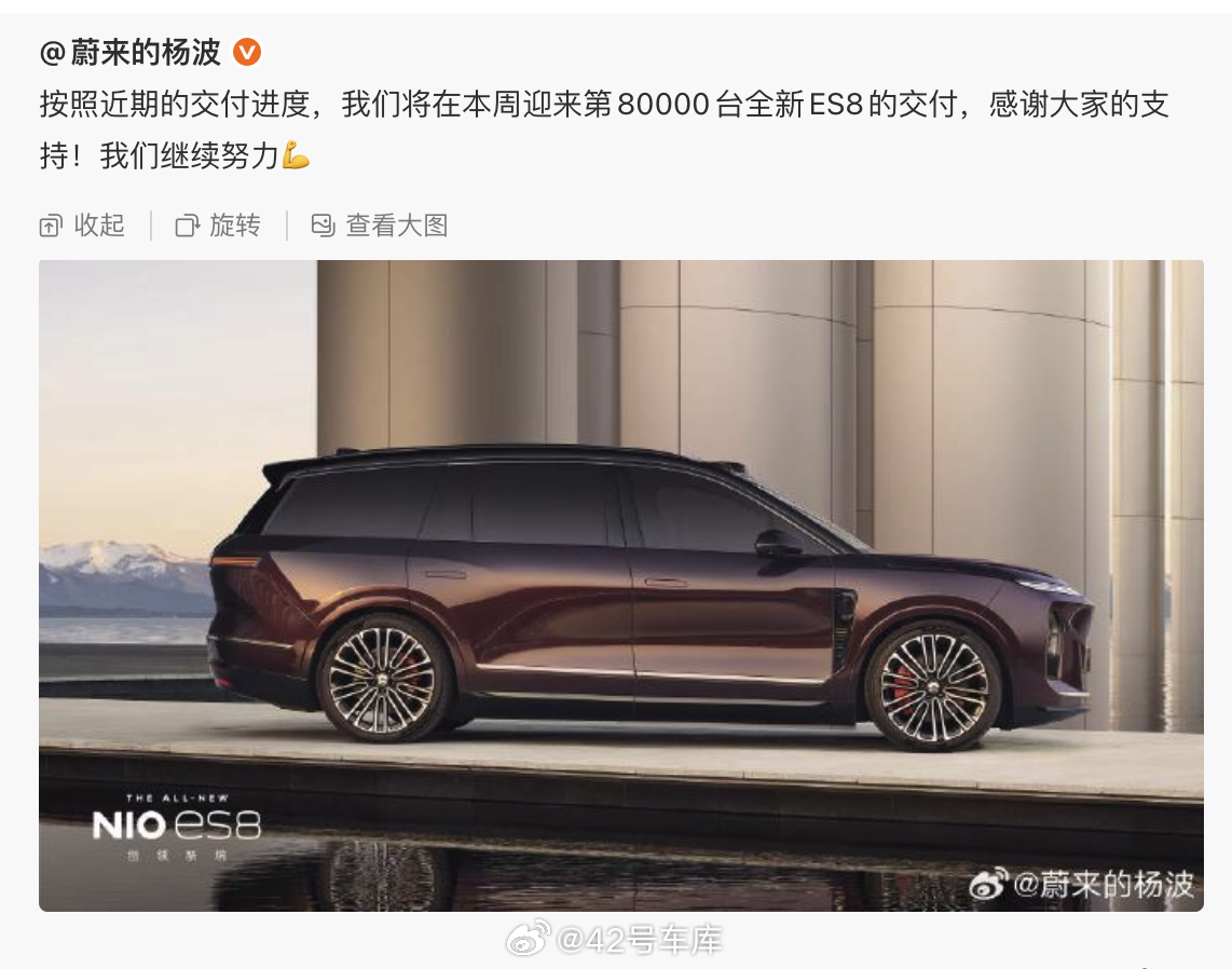 蔚来 ES8 的交付速度7 万距离现在还不到一个月