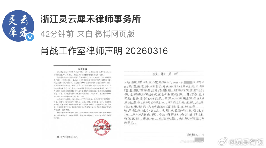 肖战黑粉抱兔散人手写道歉信肖战又一黑粉手写道歉信 16 日,浙江灵云犀禾律师事务所发布肖战相关名誉权案件简讯。北京互联网法院就徐某某“抱兔散人”网络侵权责任纠纷一案作出判决,认定徐某某发布的内容构成对肖战的侮辱、诽谤,侵害其名誉权,判令其承担赔礼道歉、赔偿损失的侵权责任。目前,徐某某已出具手写致歉信,相关赔礼道歉及金钱给付义务已履行完毕。肖战
