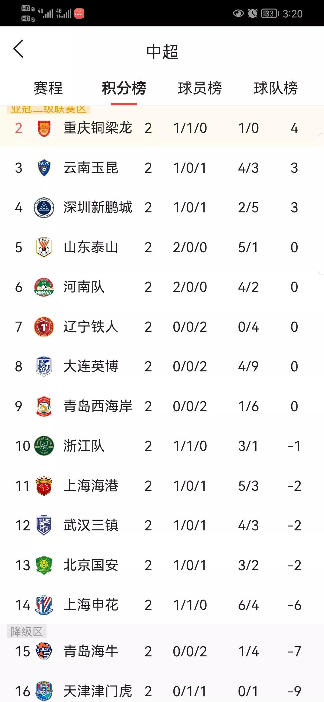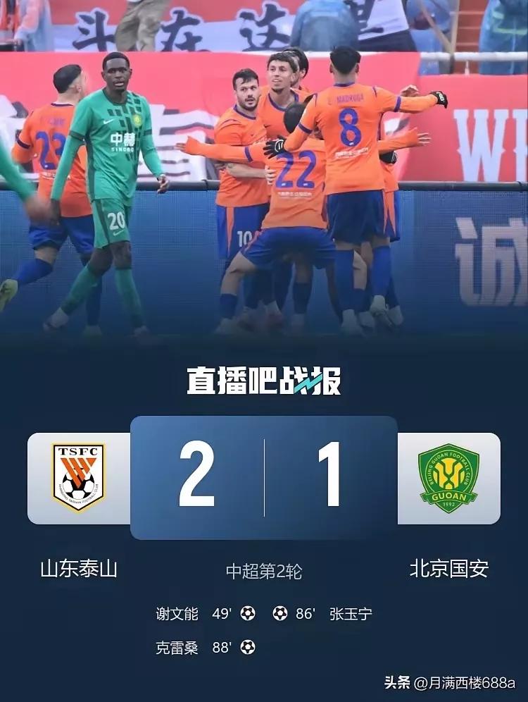 第一回合京鲁大战结束 随着山东泰山2-1取得胜利 第一支负分起步回到水平面的球队诞生 在中超比赛中,京鲁大战不用说都是很有料的爆点。 去年两回合,看点就十分劲爆。北京国安在自己的主场打了山东泰山一个6-1,第二回合回到山东泰山的主场,山东泰山又回敬了北京国安一个6-0。 新赛季刚刚开始第二轮,两队就第一次碰上了。 双方都不想输,都想赢。结果还是主场作战的山东泰山最后2-1战胜老对手,拿到新赛季第二场胜利,取得两连胜。 凭着这场胜利,山东泰山有了六分进账。 两轮过去,负六分起步的山东泰山,积分清零,回到水平面到。 山东泰山也成为九支负分起步球队中第一支清零的球队。