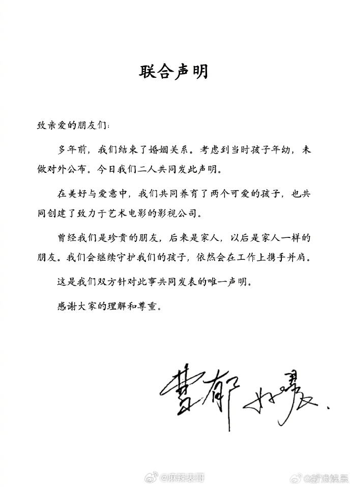 姚晨与曹郁官宣和平离婚,两人多年前便已平静分开,因孩子年幼选择暂未公开,全程体面无纷争。二人会以家人身份共同抚养孩子,守护家人成长。姚晨始终专注演艺事业,期待姐姐抛开纷扰,带来更多优质荧幕作品,未来一切顺遂。 姚晨曹郁官宣离婚