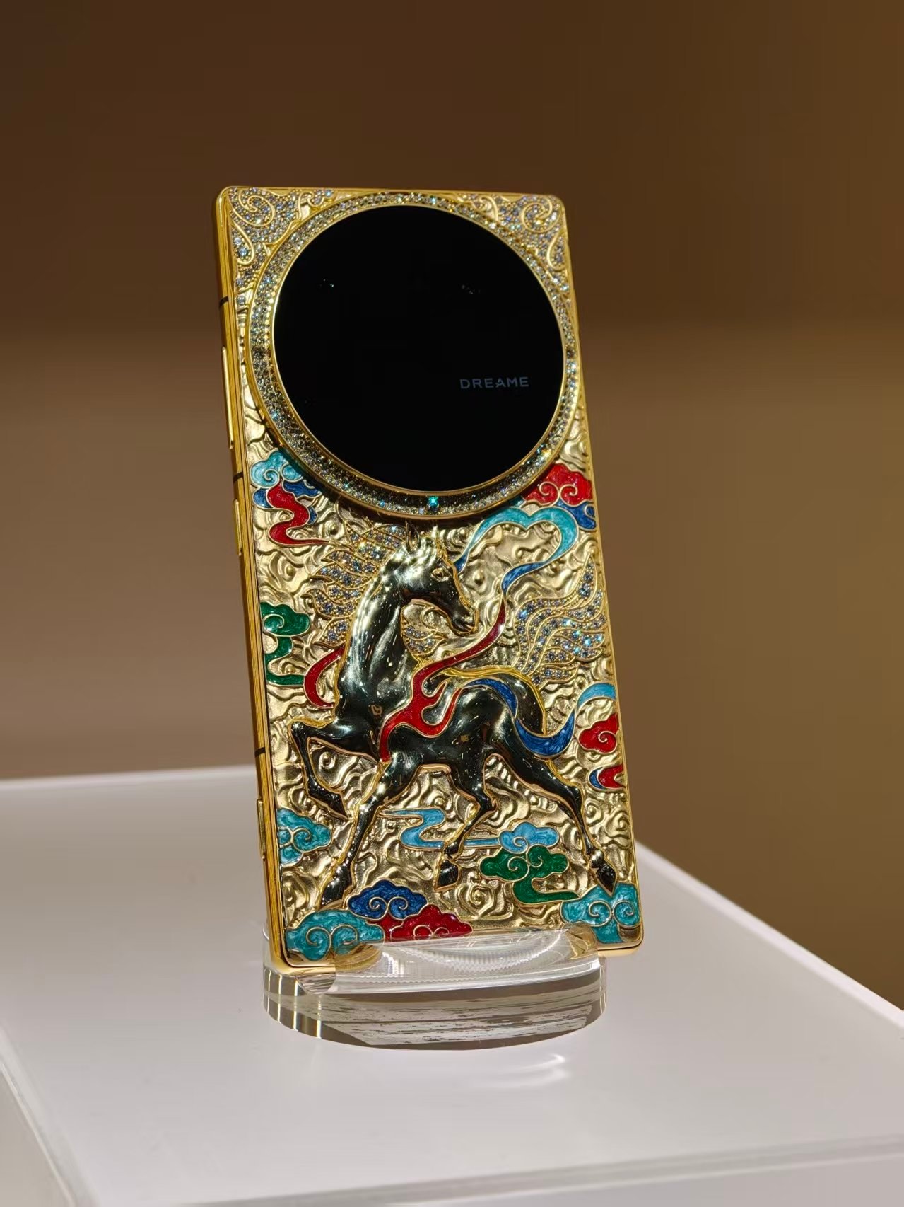awe2026 猜猜我看到了什么?追觅AURORA在上海AWE展会的首秀,没想到追觅出手机了,不过和一般手机还有点不同,双产品线布局,一边是艺术藏品,一边是影像怪兽。高奢系列(LUX),把手机做成可随身携带的艺术品✨稀有皮料、镶金镶钻,甚至融入非遗古法技艺,机身质感拉满。更有纯金+天然钻石的定制款,售价高达5万多美元,把「高端」刻进每一寸细节,未发布便在海外圈粉无数。