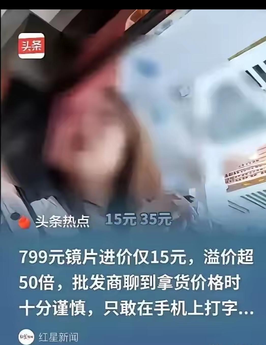 谁都没想到,315晚会还没播,大把学生家长傻眼了!不是因为超市鸡蛋涨价,不是因为外卖红包变少,而是眼镜行业的水分,大到让人不敢信。 很多家长感慨,平时给孩子买文具、报辅导班都精打细算,唯独在配眼镜这件事上不敢还价,总觉得贵一点就是对眼睛好,可直到真相曝光才发现,自己的心疼和信任,反倒成了被拿捏的软肋。 这波被广泛报道的调查,直接把国内眼镜主要产地的真实成本摆在台面上,市面上最常用、适合学生佩戴的1.61折射率树脂镜片,在源头批发环节的价格仅仅15元,这不是次品,也不是处理货,而是符合国家质量标准的常规镜片。 可就是这样一片成本极低的镜片,进入城市里的眼镜门店之后,标价直接跳到799元,溢价超过50倍,就算门店打出三折、五折的优惠,消费者以为占到便宜,最终成交价格依旧是成本价的十几倍,商家依然有着极高的利润空间。 市面上一些打着超低价噱头的配镜套餐,看似十几块钱就能配一副眼镜,商家依然有钱可赚,整套物料成本低到普通人不敢相信,低价引流、高价升级,早已是行业里心照不宣的玩法。 镜架的套路同样不少,普通合金镜架出厂价只有几块钱,轻便常见的材质也不过二三十元,就算是质感更好的纯钛镜架,源头价格也多在百元以内,可经过门店包装、贴上进口、专业、儿童专用的标签,价格立刻翻几倍甚至十几倍,家长看着精致的款式和店员耐心的讲解,很难把眼前几百上千元的镜架,和几十块的成本联系在一起。 比单纯加价更让家长无奈的,是各种针对视力焦虑的概念炒作,现在孩子电子产品用得多,近视率居高不下,父母最担心度数加深,商家恰好抓住这份心理,把防蓝光、抗疲劳、近视防控等功能吹得神乎其神,实际上,所谓防蓝光只是在镜片表面多镀一层膜,生产成本只增加几元到十几元,到了门店就能多卖几百元。 国家卫健委与相关眼科机构多次明确,日常环境中的蓝光并不会对眼睛造成实质伤害,防蓝光不能预防近视,劣质的镀膜还可能因为透光率不足、颜色偏色,反而加重视觉疲劳,耽误孩子的视力保护。 比价格虚高更隐蔽、也更伤害孩子的,是验光环节的不规范。 配镜本是带有医疗属性的专业行为,可不少门店为了提升成交、促进复购,存在简化流程、设备未检定、验光人员无资质等问题,甚至故意微调度数,让孩子佩戴不适,没过多久就需要重新更换眼镜,很多孩子本是假性近视,却因为不精准的验光直接戴上眼镜,慢慢变成真性近视,这种看不见的伤害,比多花几百块钱更让人难以接受。 眼镜行业之所以能长期保持高溢价,核心原因就是信息不对称,大多数家长不懂折射率、阿贝数、镀膜类型,只能听从店员推荐,再加上眼镜属于刚需、复购稳定,商家笃定家长不会在孩子眼睛上省钱,才敢大胆定价、层层加价。 从工厂到省级代理、市级分销,再到终端门店,每一层都要分走利润,最终所有成本都由普通家庭承担。 好在监管已经及时跟上,从今年年初开始,两项针对眼镜产品的国家强制性标准正式实施,对镜片光学性能、镜架安全、蓝光指标都做了严格限定,不允许夸大宣传、虚标功能。 315舆情发酵之后,各地市场监管部门迅速开展检查,重点整治虚构原价、虚假折扣、误导宣传等行为,要求门店必须明码标价,把品牌、参数、价格清清楚楚标注,不允许看人报价、模糊收费。 随着信息越来越透明,越来越多的家长开始选择医院精准验光、自主选择镜片、线上正规渠道配镜,同样的品质,价格能比线下门店低一半以上,这种理性消费正在倒逼行业告别暴利时代。 眼镜本来是守护视力的工具,不该变成收割家庭的商品,孩子的清晰视界,不需要用虚高的价格来买单,当成本公开、监管到位、消费理性,这副架在鼻梁上的“高价负担”,才会真正回到合理的位置。