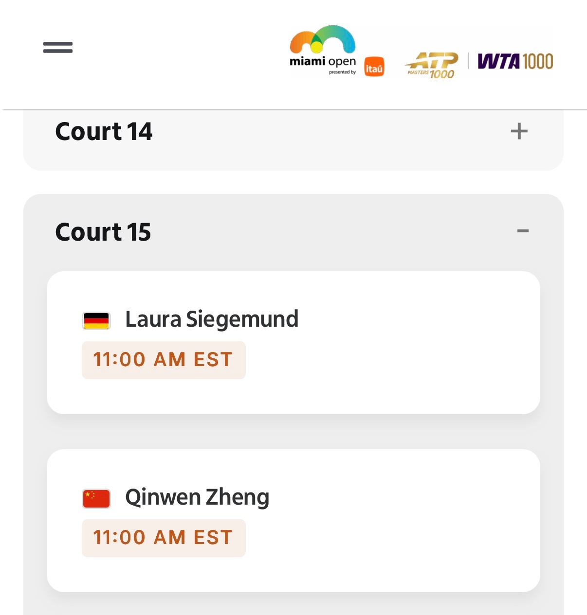 迈阿密赛官网显示,郑钦文今天的训练搭子是西格蒙德