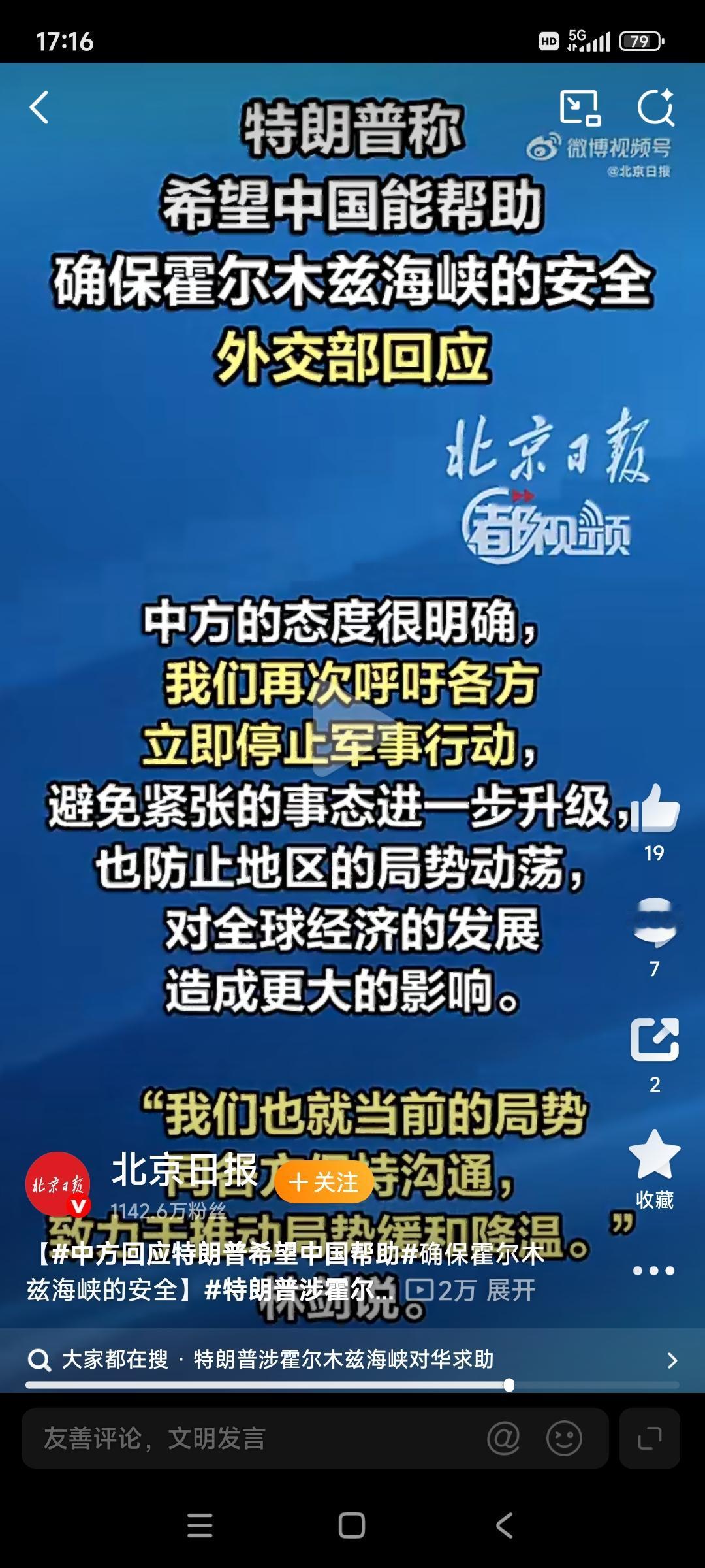 3月16号,特朗普政府邀请各国成立一个霍尔木兹海峡护航队,中国也已接到邀请名单,是否参加?中国的态度已明确表示,各方先停止任何军事行动再说,其他话面谈!有能力发起战争的特朗普,确无法体面的收场,想叫其他国背上黑锅,门都没有!