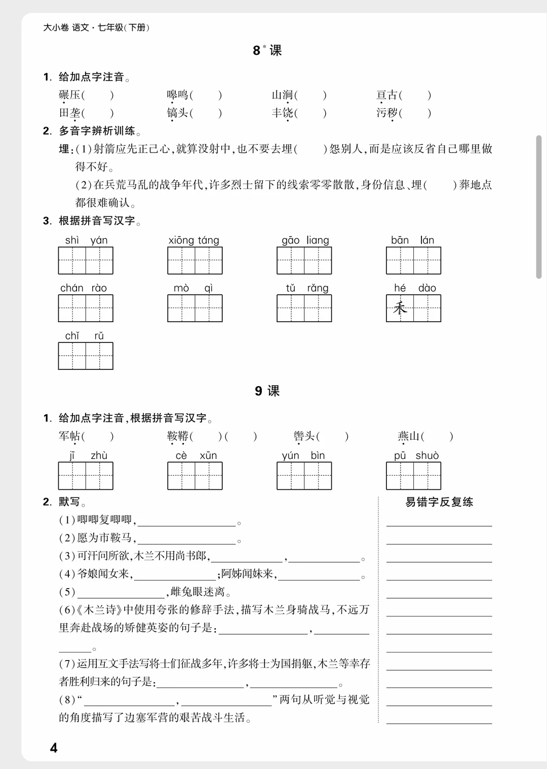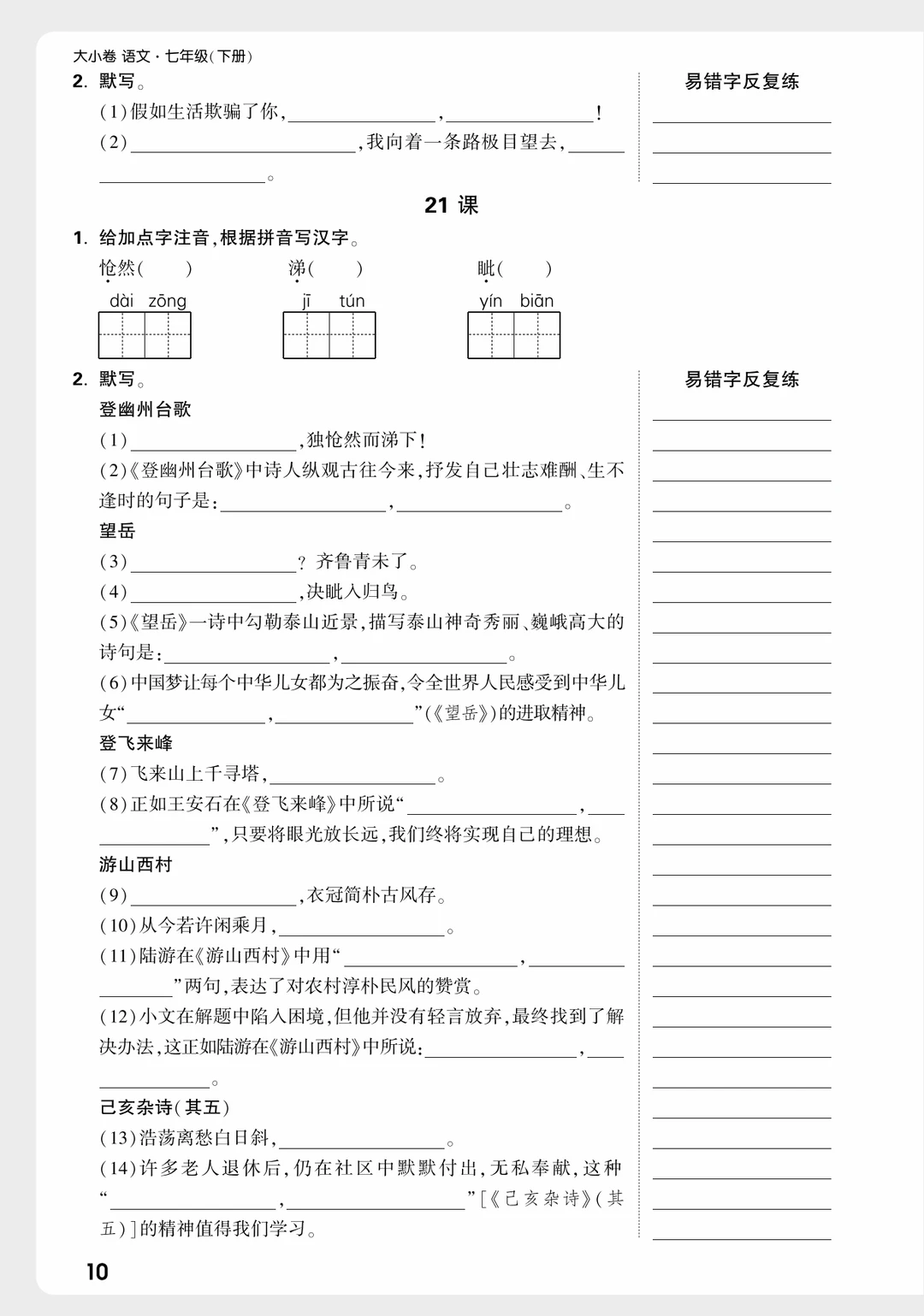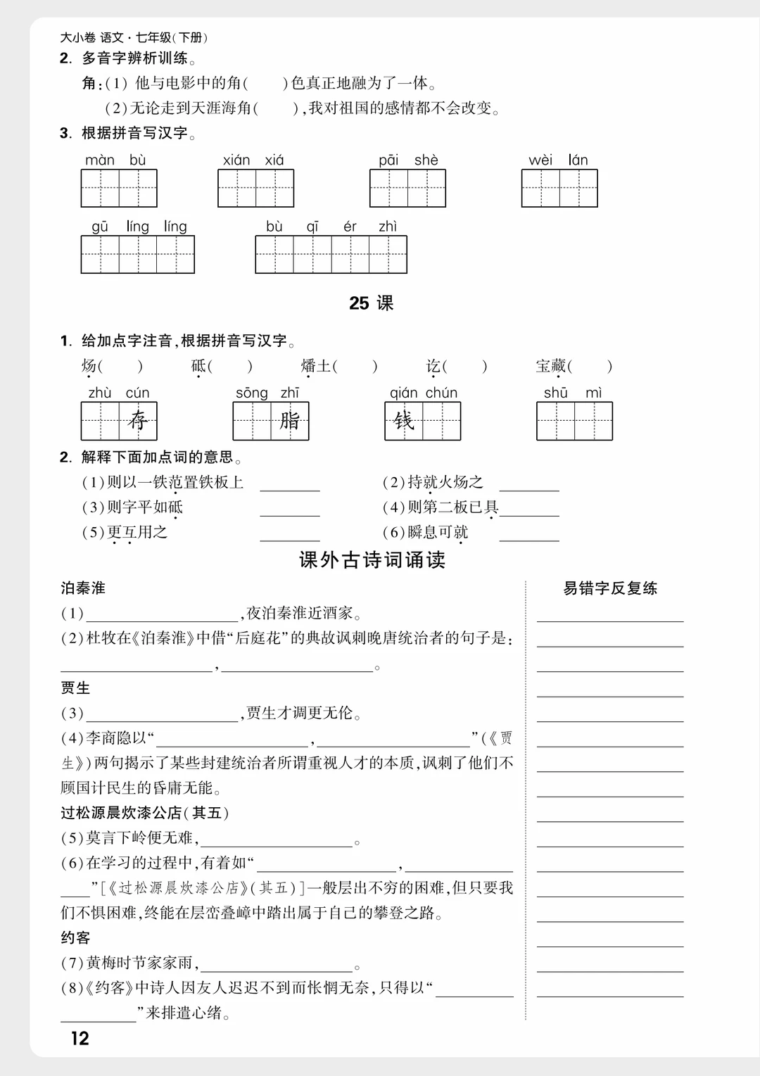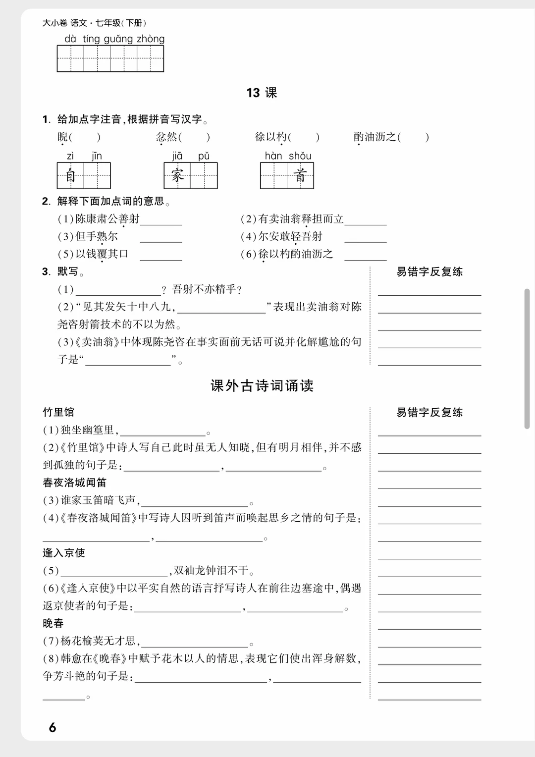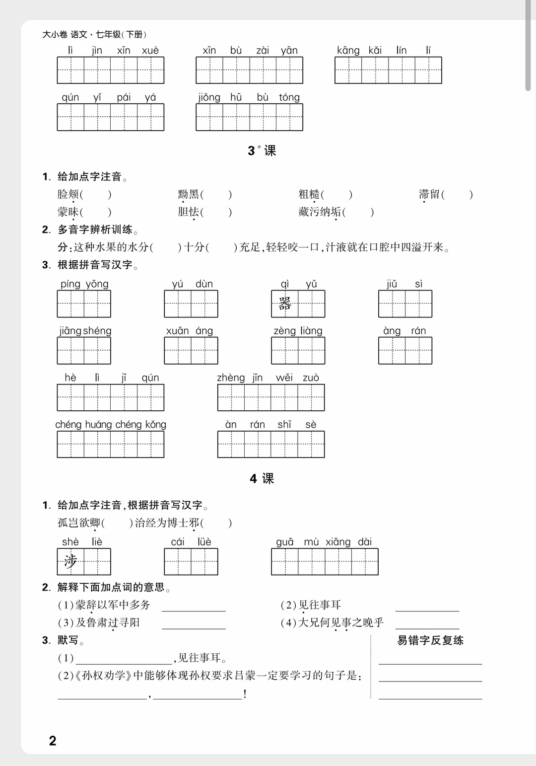 七下语文|每课听写改成➡课前练了