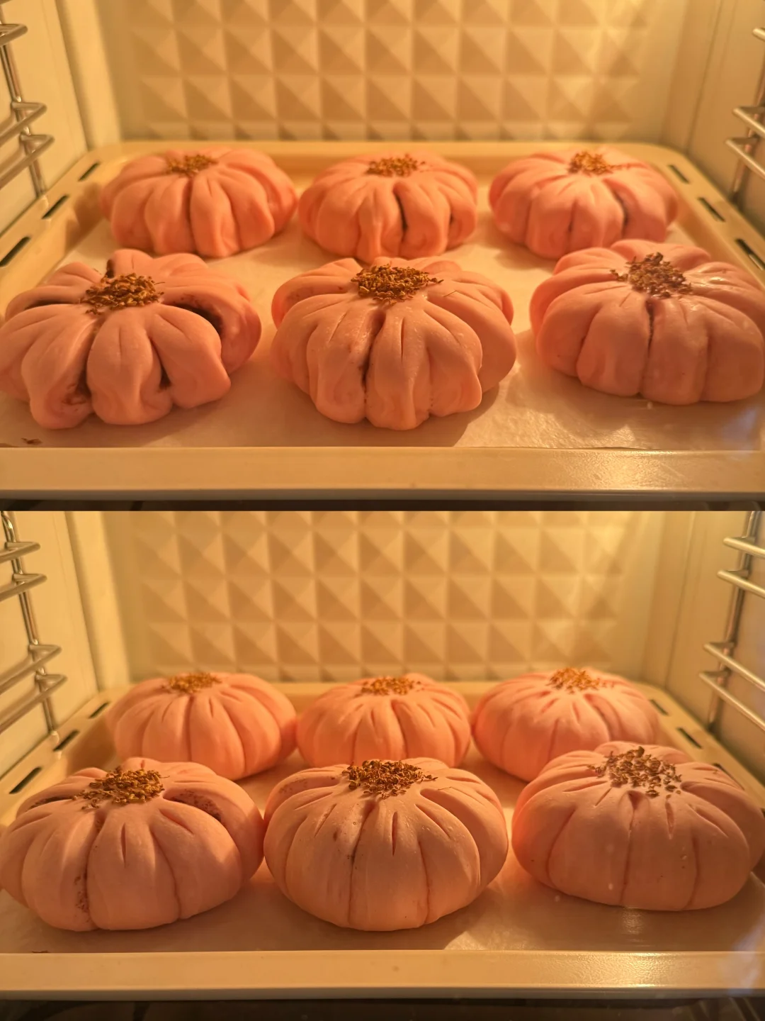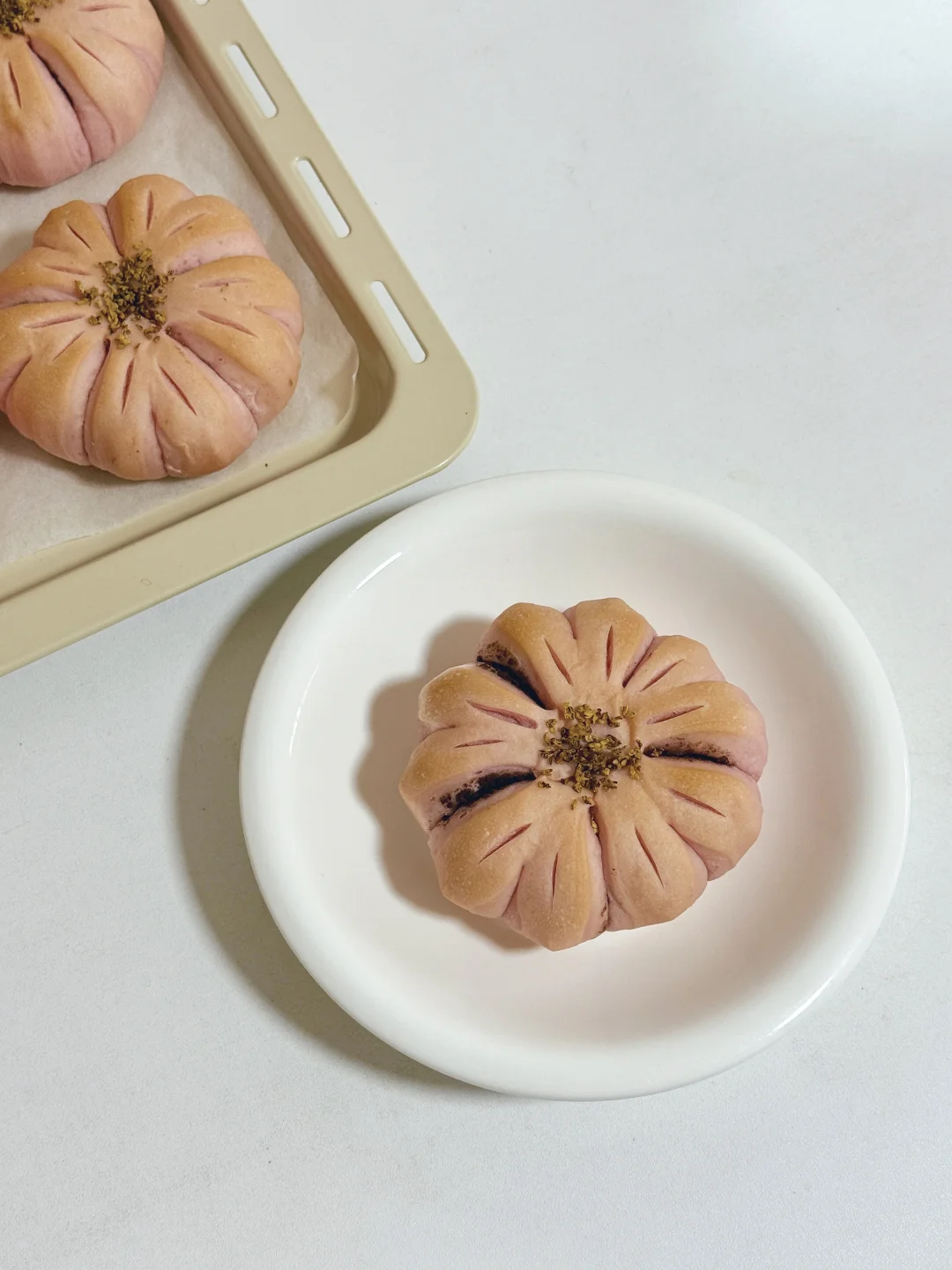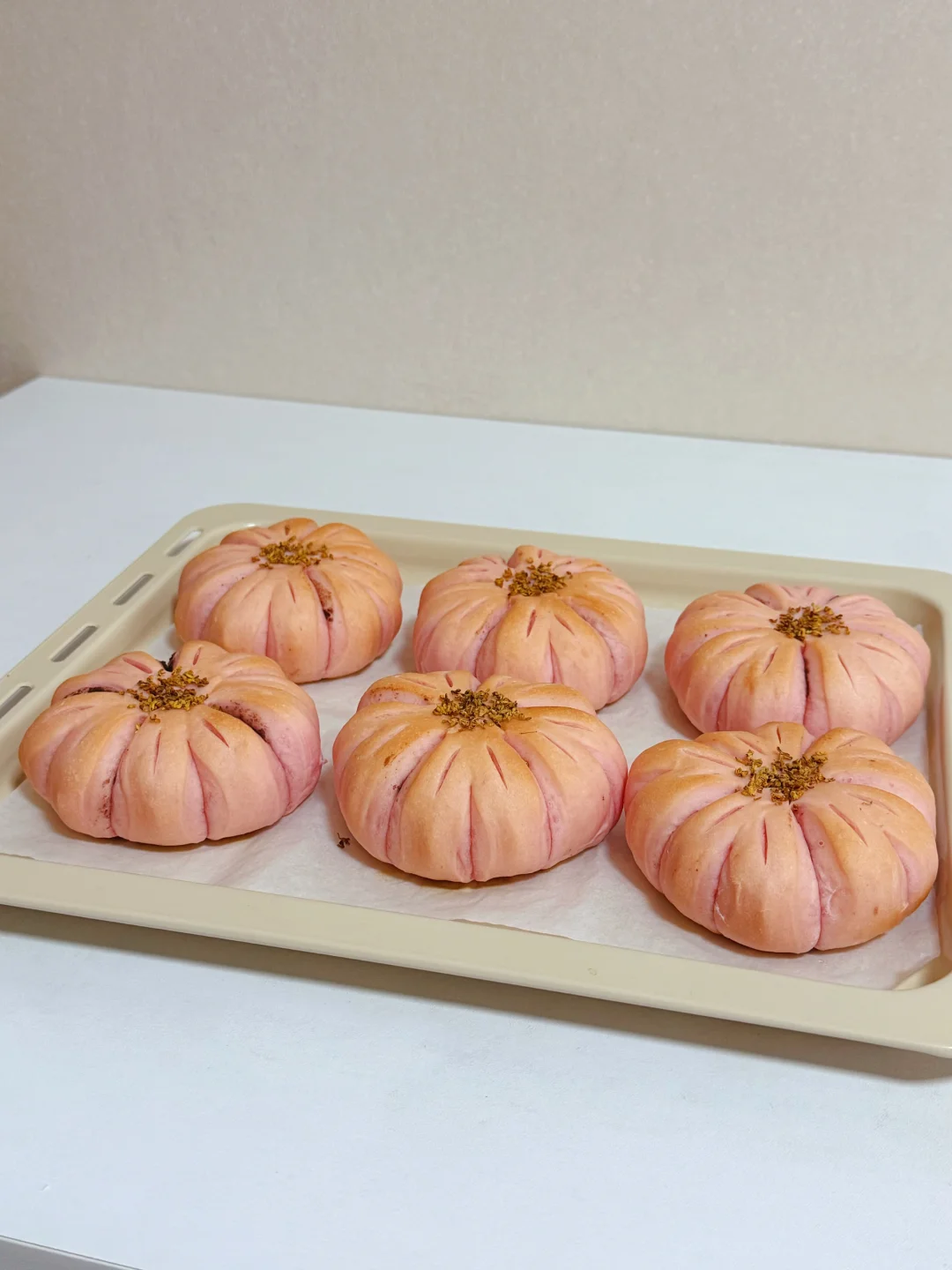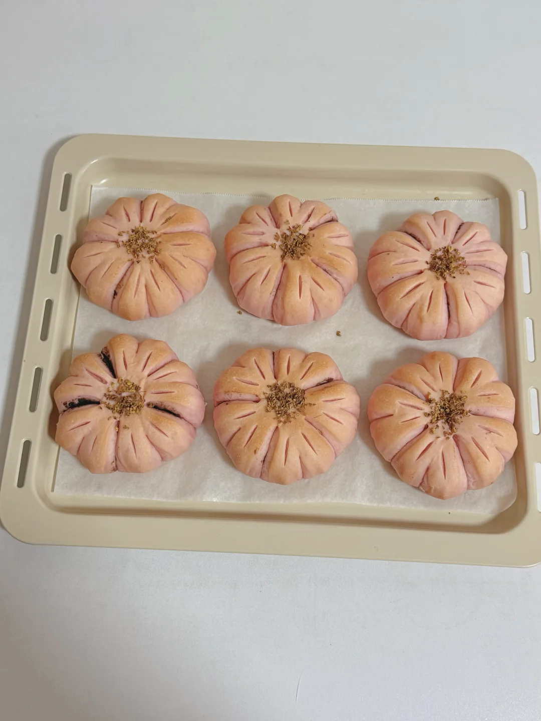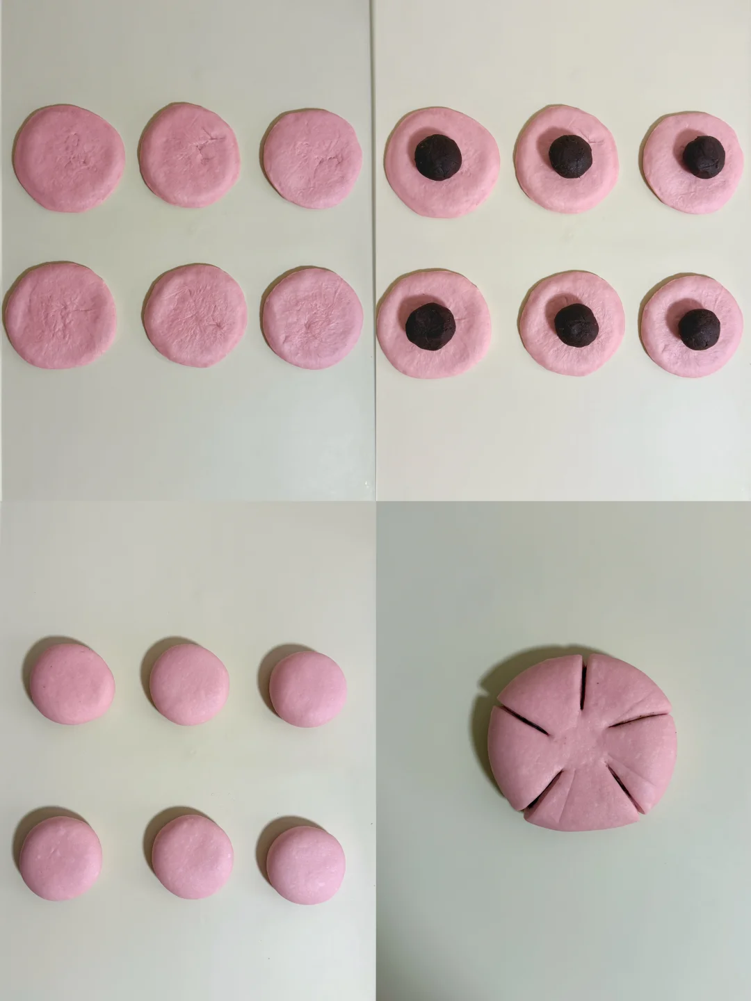 又是一年樱花季,我把超美的樱花做成了面包,既美丽又美味😋 🌸主面团: 高筋面粉240克 低筋粉40克 牛奶170克 干酵母3克 细砂糖20克 盐2.5克 黄油25克 仙人掌果粉1克 内陷:市售红豆沙 表面装饰:干桂花 🔥烘烤温度参考 平炉烤箱180°C 15分钟 为避免表面上色可在7 8分钟左右的时候加盖锡纸