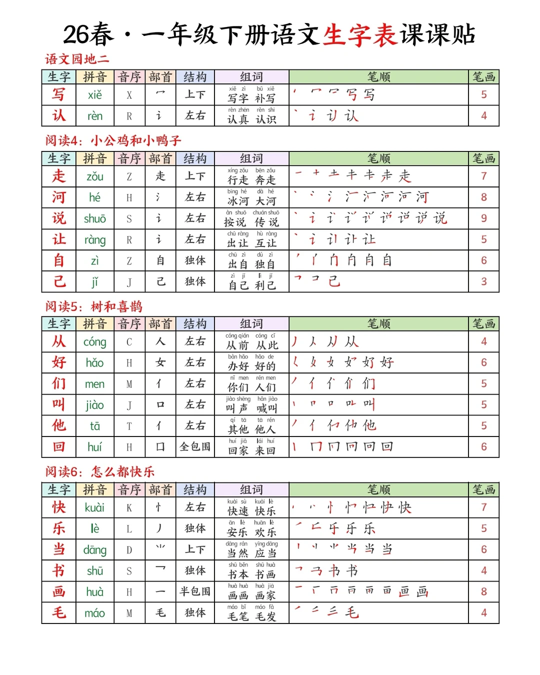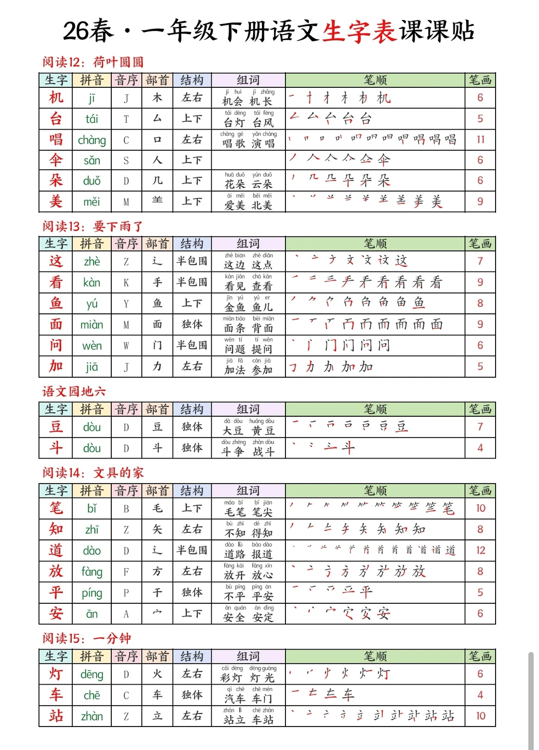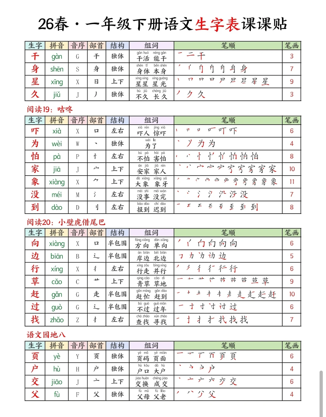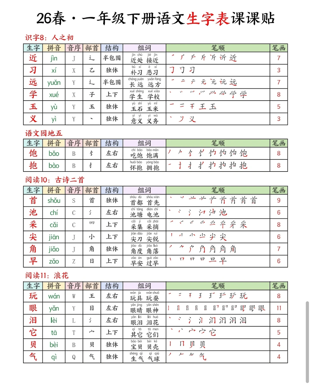 一下语文|26春生字课课贴🍃