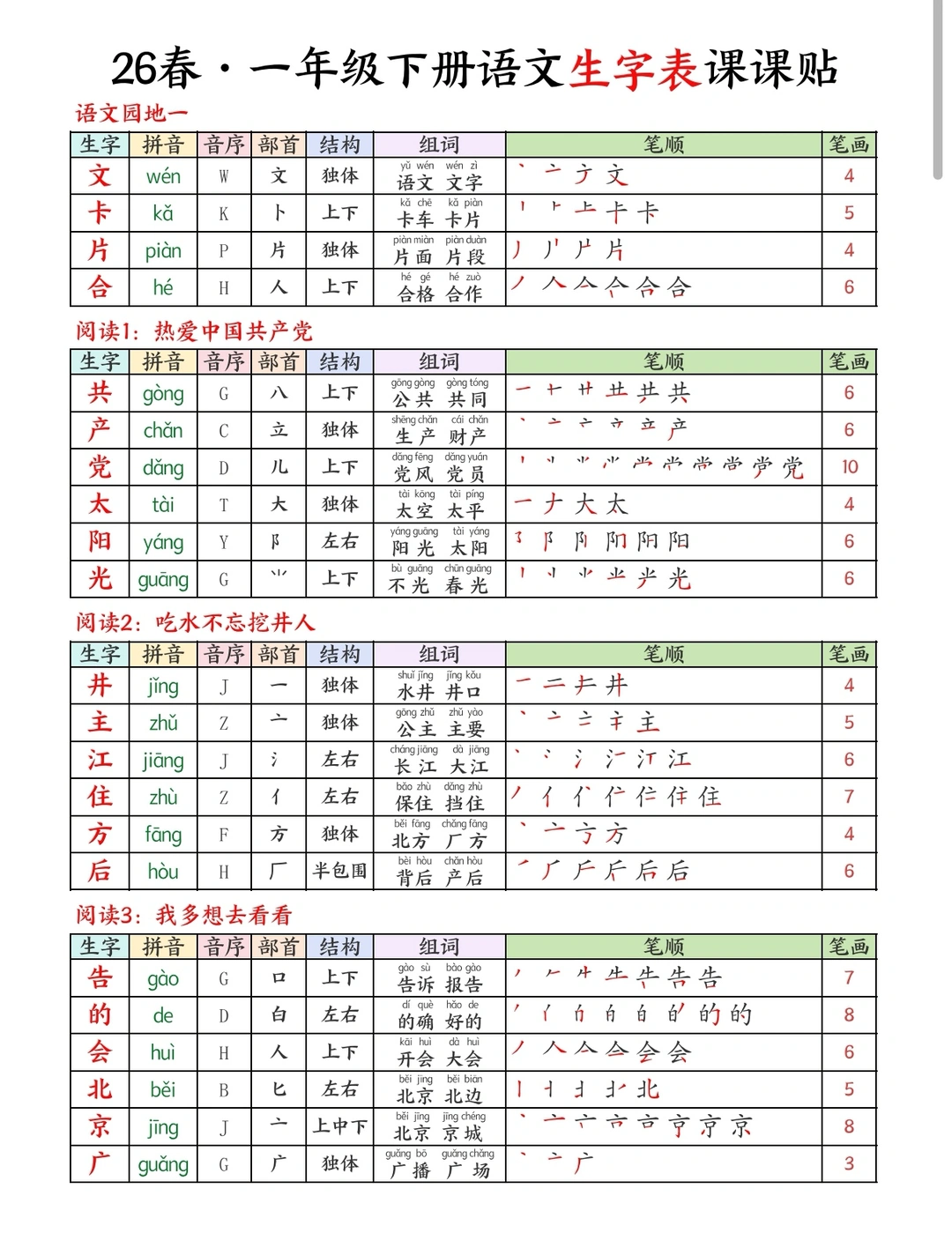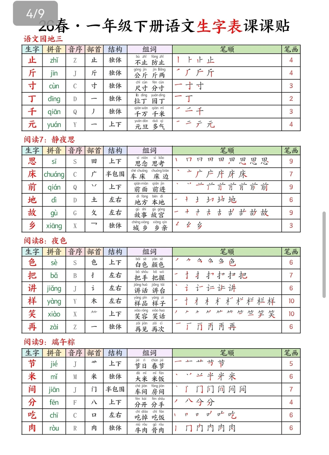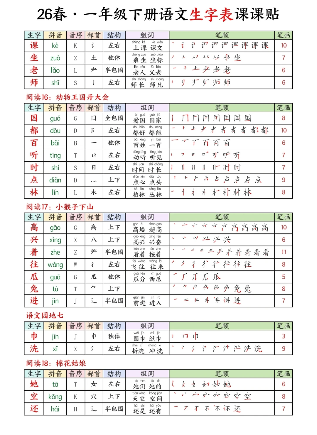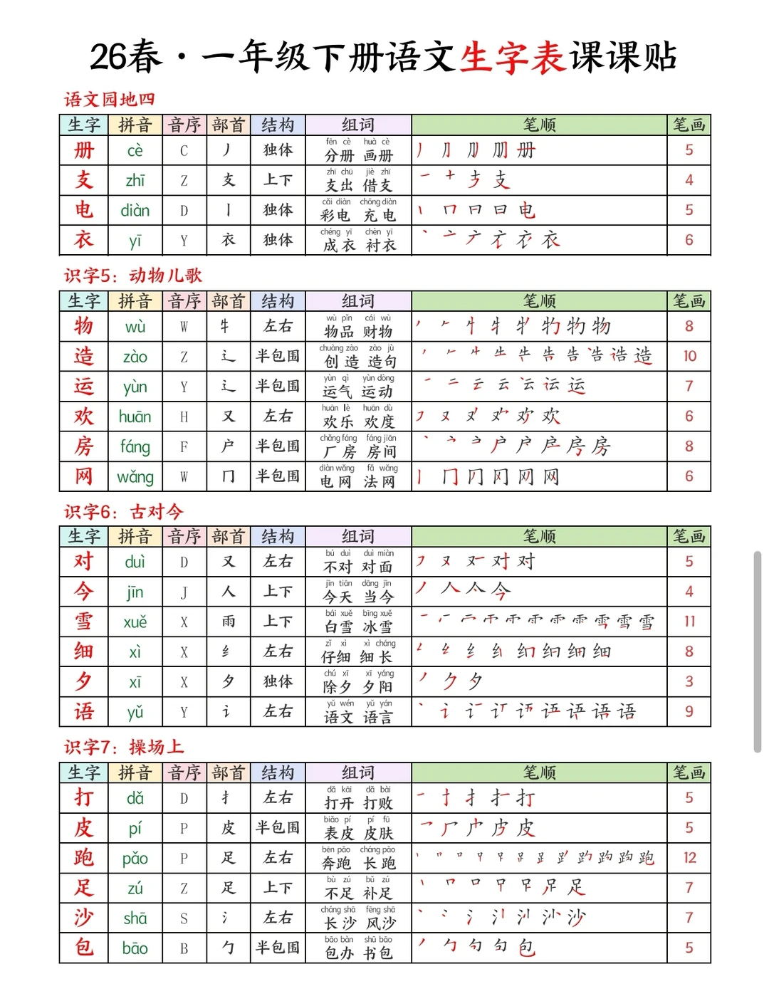 一下语文|26春生字课课贴🍃