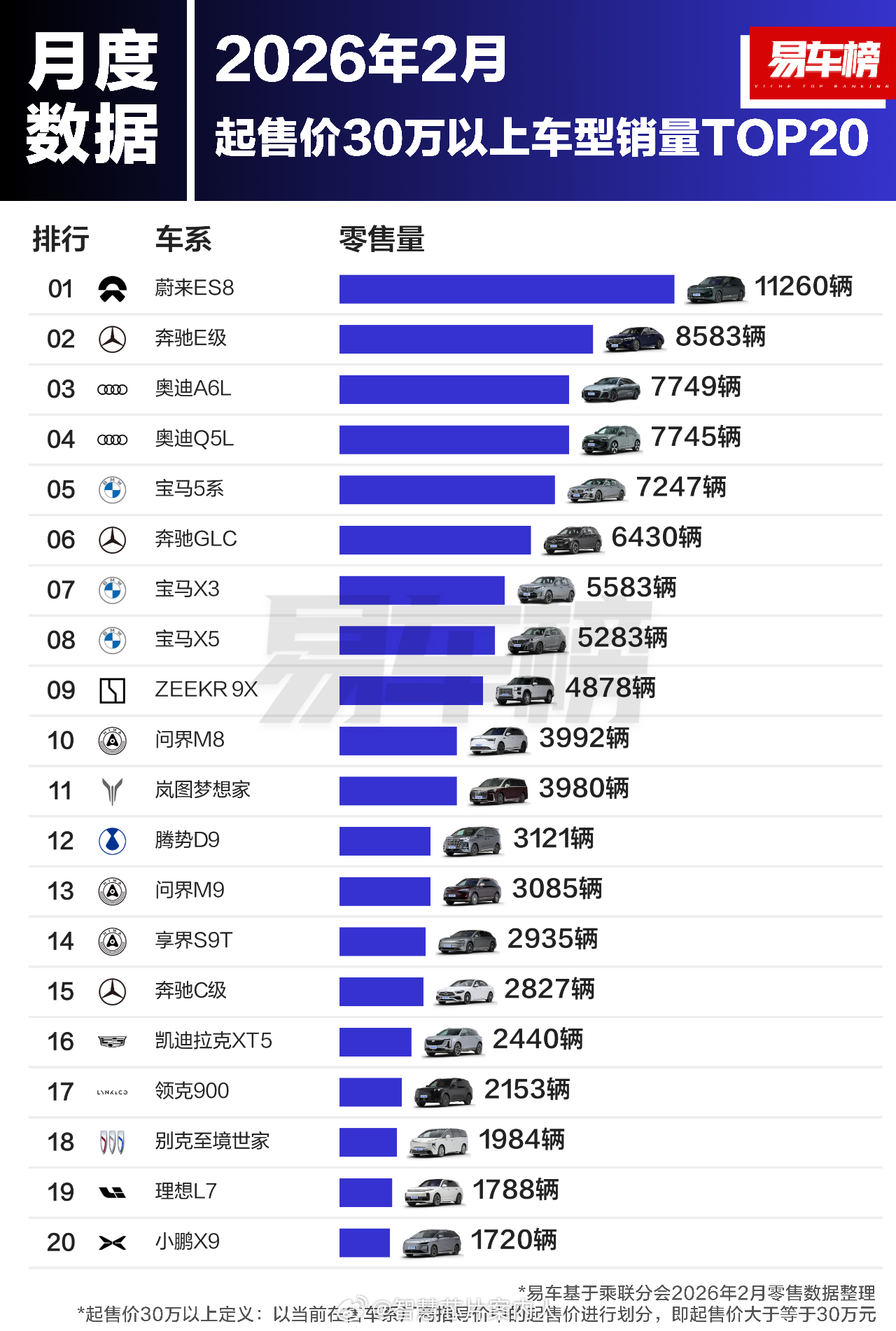 易车榜2月份Top20车型数据。