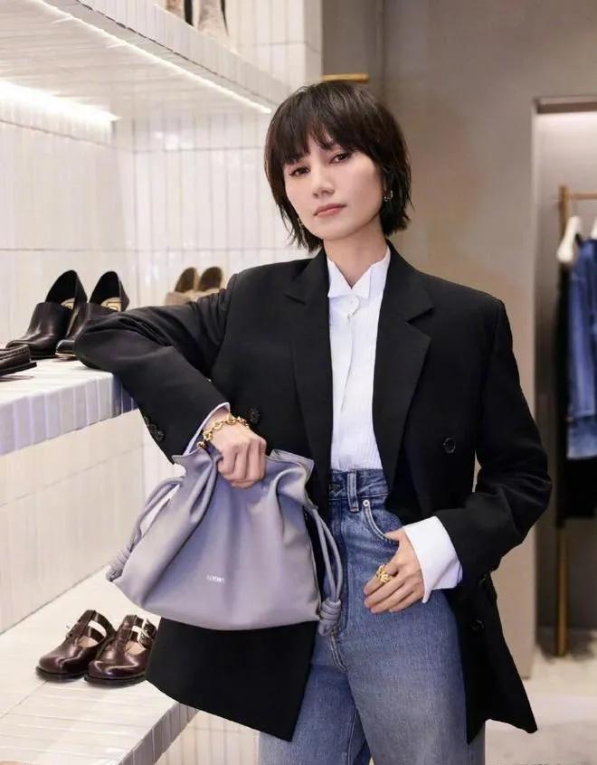 学袁泉穿西装,高级感直接拉满! 黑西装+白衬衫+牛仔裤,经典的“通勤风”公式,怎么穿都不会错。 搭配微卷短发,清冷又干练,这才是顶级的衣架子吧! 袁泉 西装穿搭 通勤穿搭