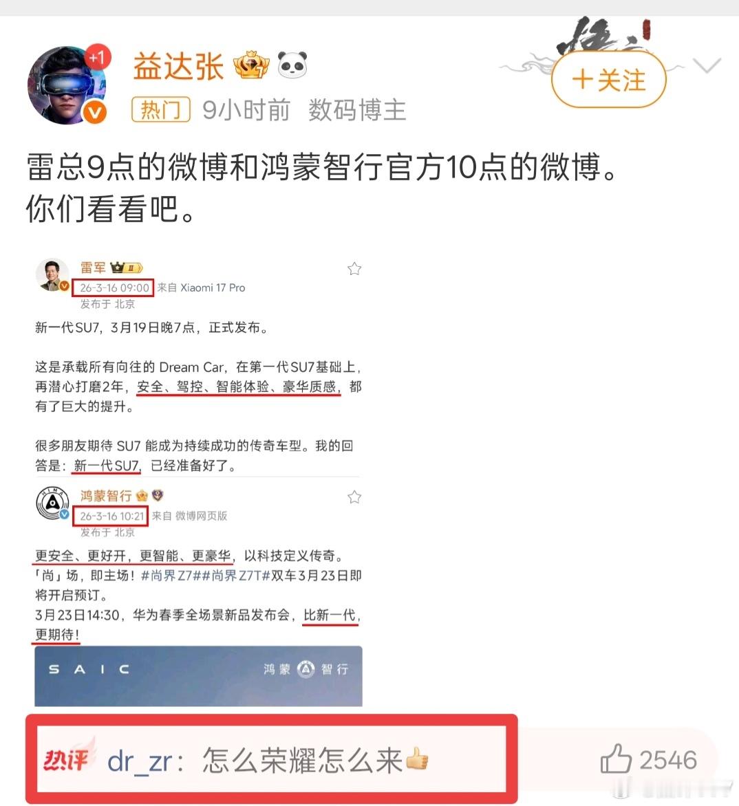 另外,标红框这位网友,为什么在鸿蒙智行和小米相关的博文底下,诋毁荣耀??鸿蒙智行 小米