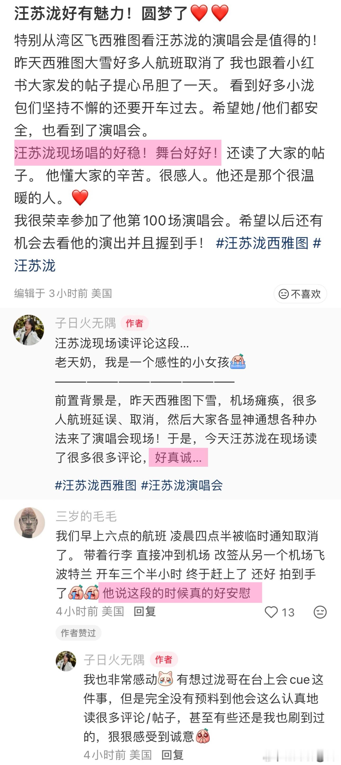 汪苏泷第一百场个人演唱会 百场荣光,如约而至。汪苏泷以音乐为舟,在西雅图编织浪漫,从起点到百场,每一步都走得坚定,每一曲都打动人心。
