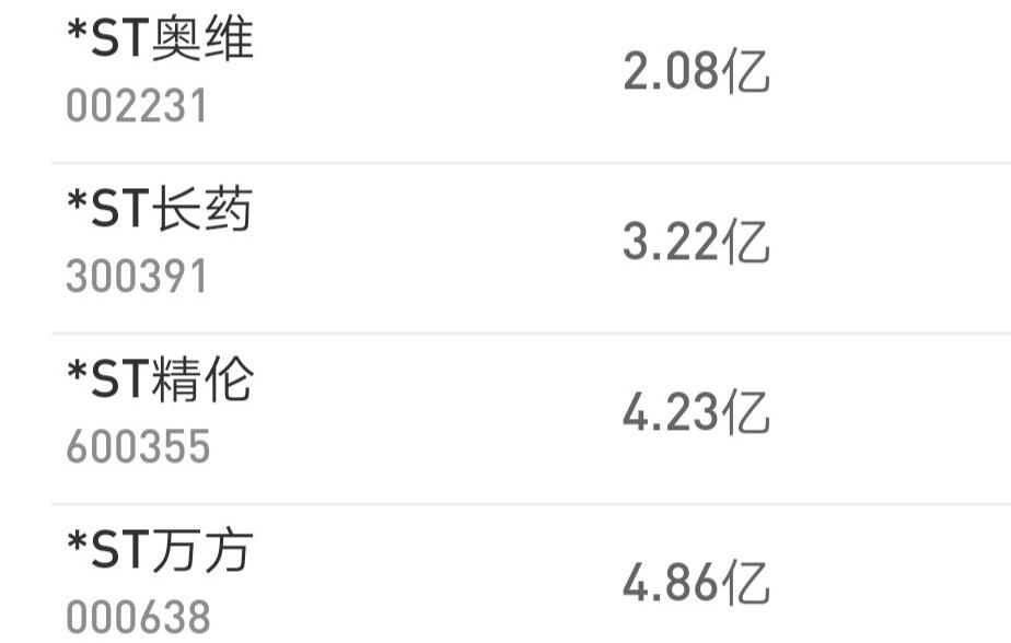 A股市值低于5亿元的票,现在有四只。*ST奥维和*ST长药基本确定退市了,目前是停牌状态。还有*ST万方和*ST精伦,如果连续二十个交易日市值低于5亿元,就会被终止上市。能在ST票上赚大钱的,都是主力资金,因为有定价权,想拉就拉想砸就砸,而散户都是跟风买卖的。等主力赚够了货也出完了,就砸一字跌停,散户想跑都没门。 如果真想在股市长期赚钱,一定要把风险管理放在首位,要有复利思维,别想着靠一只票翻身。