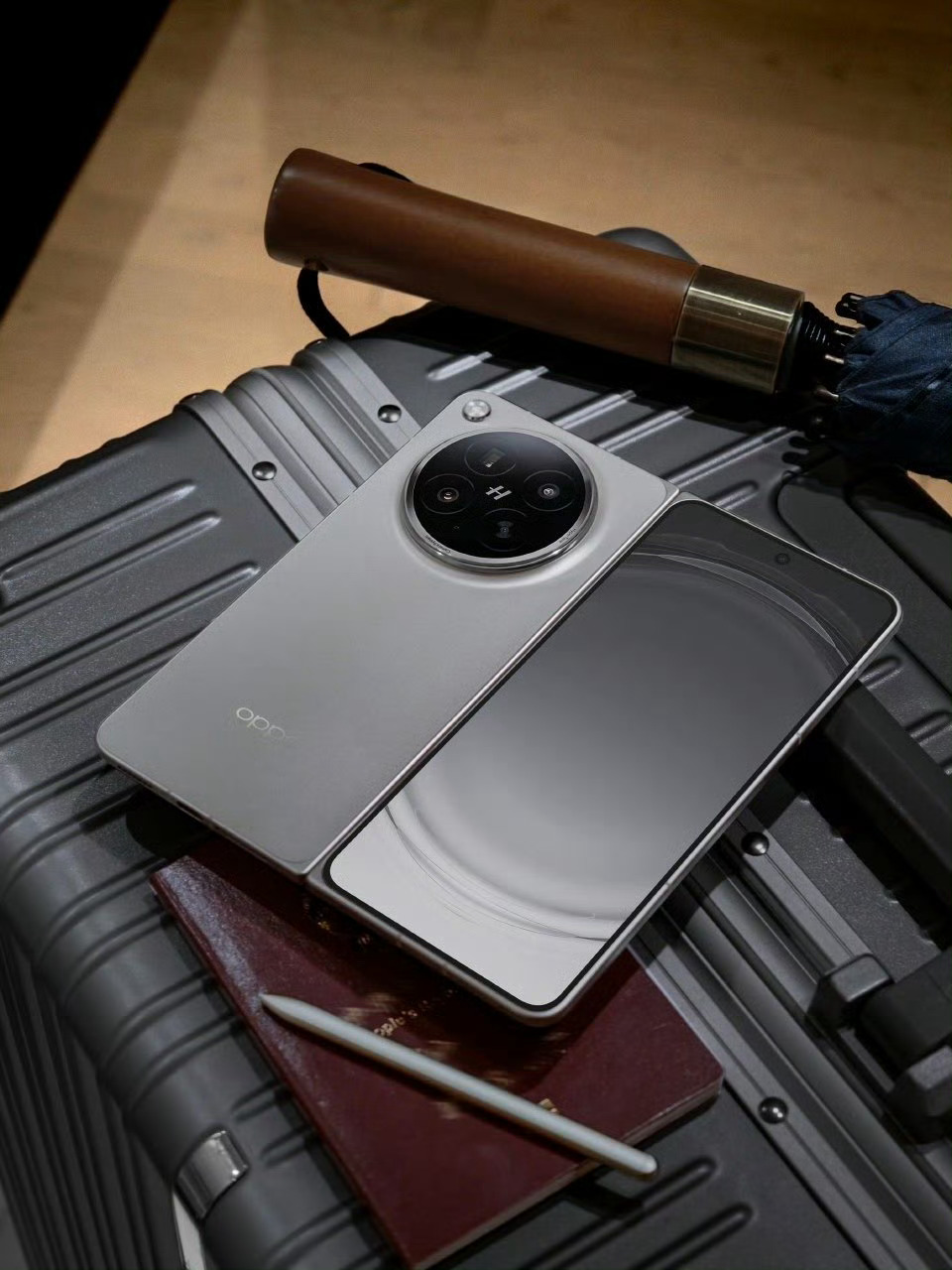 OPPO Find N6金橙真机上手图,橙色很低饱和度,有点马卡龙色的感觉,好看