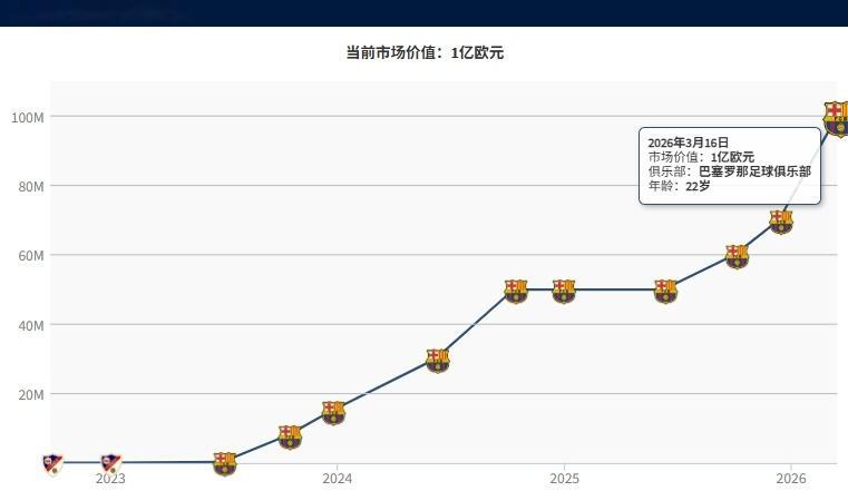 德转更新西甲球员身价后,巴萨22岁中场费尔明迎来身价大爆发,单场涨幅达3000万欧,从7000万欧攀升至1亿欧。本赛季,他代表球队出场37次,高效贡献11粒进球与15次助攻。 巴萨vs纽卡斯尔联