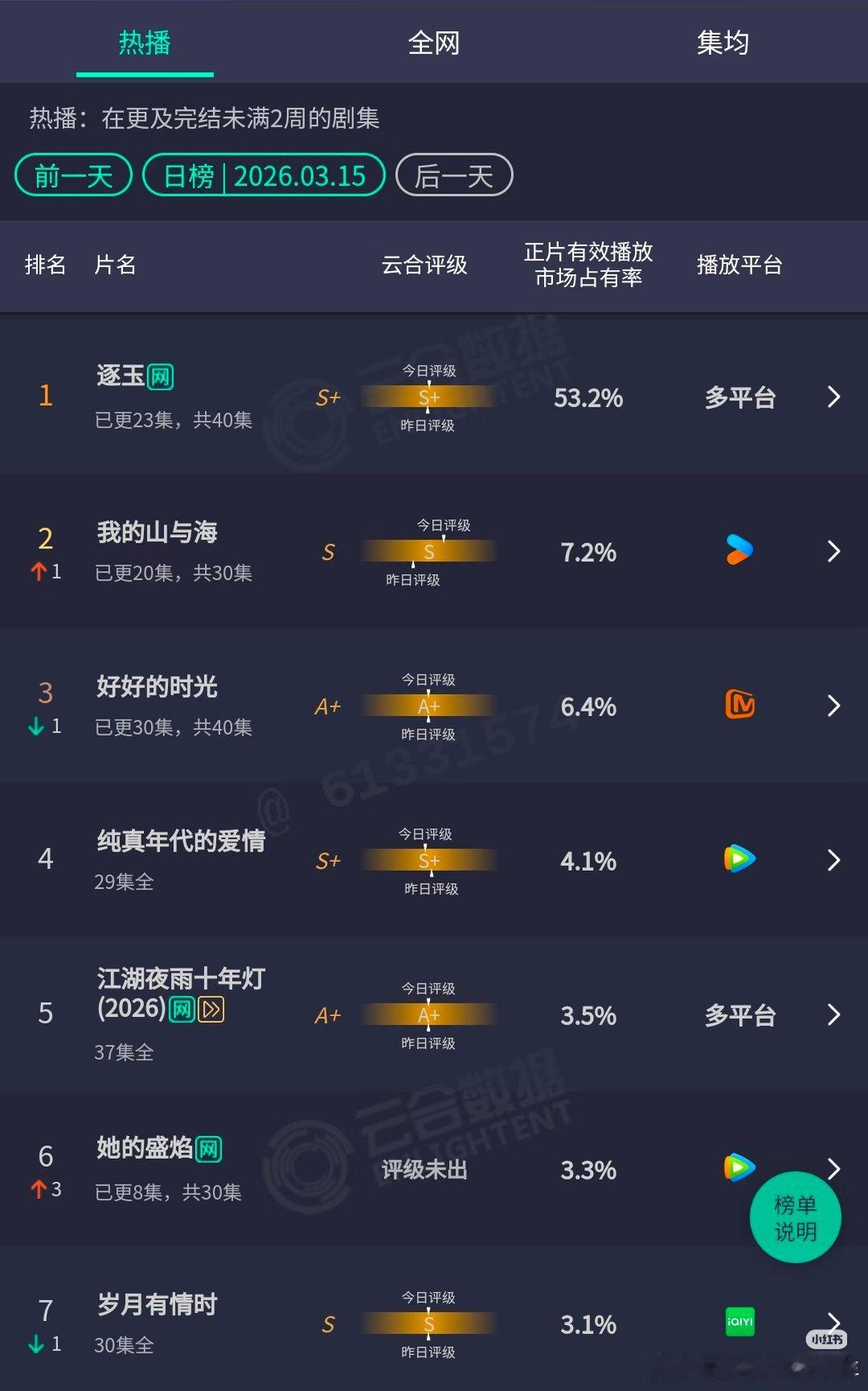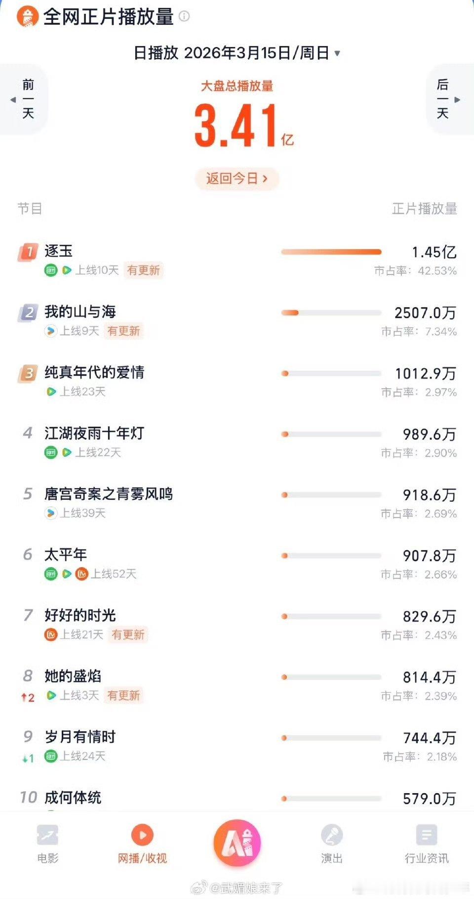 张凌赫 导演你管管她张凌赫田曦薇《逐玉》单更播放量连续2天过亿🔥 ,云合占比53.2%🔥🔥云合日榜十连冠🔥🔥🔥酷云历史收视平均(暂)0.3998%张凌赫 导演你管管她