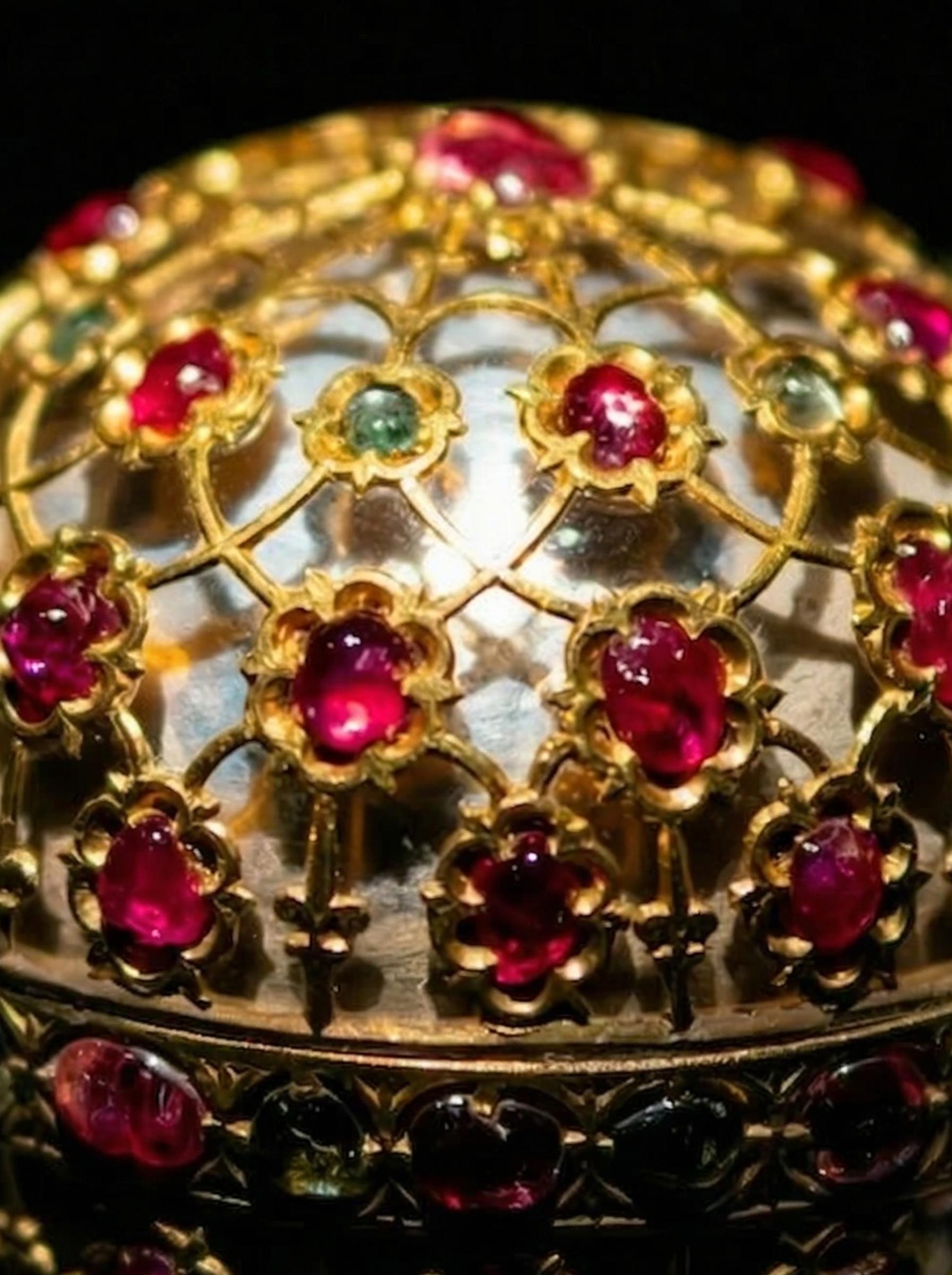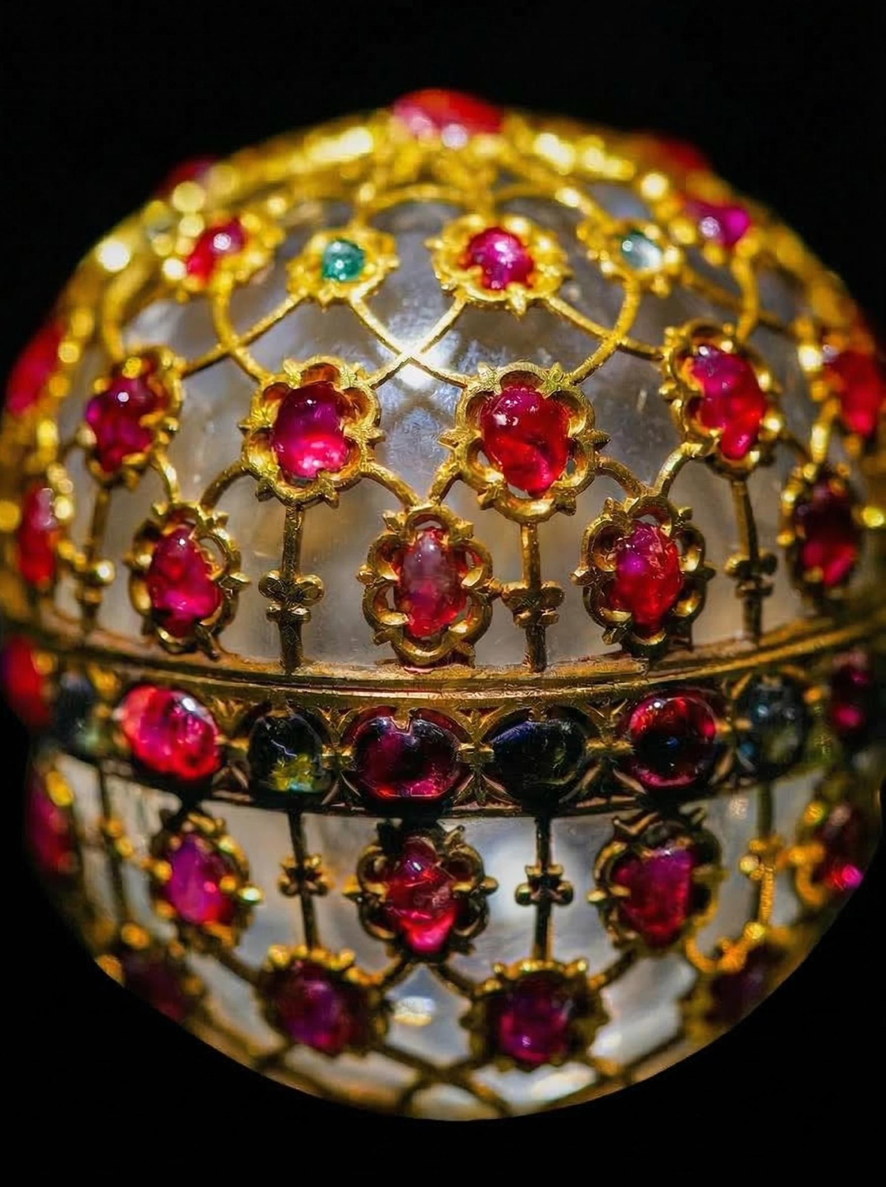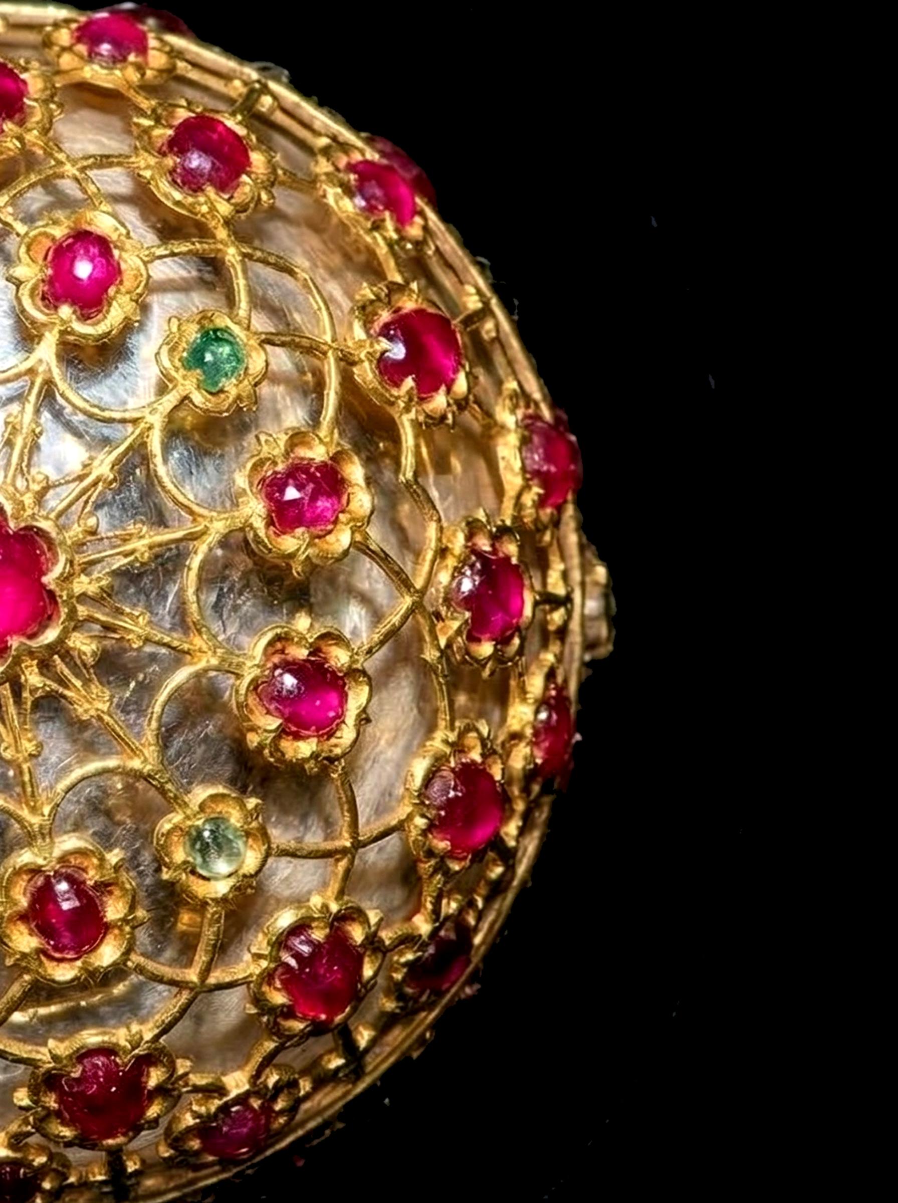 红宝石与祖母绿以 Kundan 挤压镶嵌 固定其间