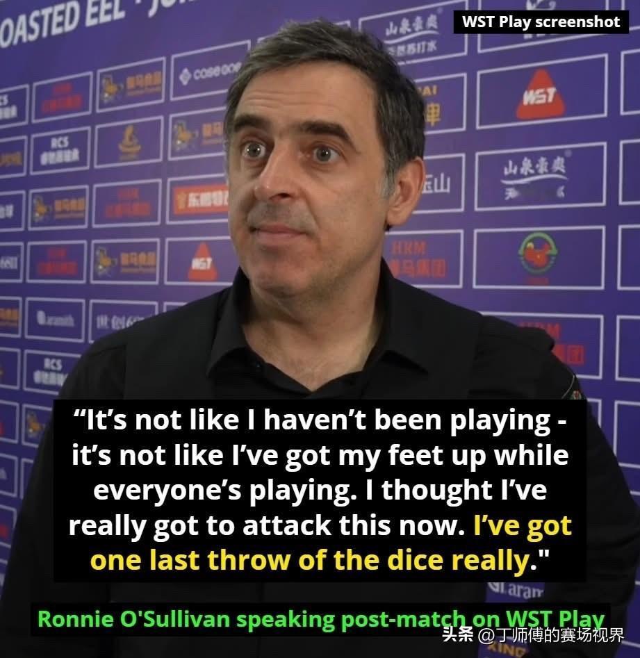 罗尼·奥沙利文承认自己一直在幕后努力训练,并且似乎渴望重返巅峰状态。 这位七届世界冠军在玉山举行的世界公开赛赛后表示:“我并非完全没有打球,也不是大家去比赛的时候我就游手好闲,我觉得现在真的必须全力以赴了,我真的还有最后一次机会。” 看来奥沙利文这次是真的认真了,考虑他已经50岁了,就给他争夺第八世锦赛冠军的机会不多了,难怪他老老实实来中国打比赛了,虽然他已经是史上最佳,即便他有时状态不佳。一旦他状态正佳且全神贯注,那简直是另一个世界!