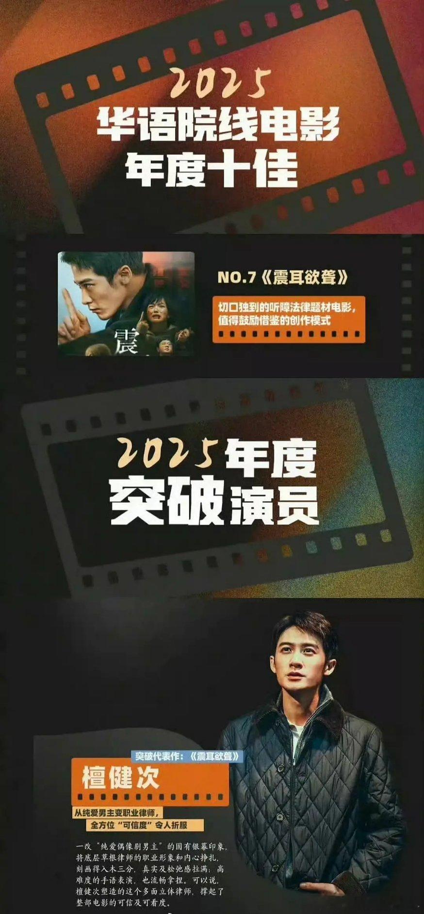 震耳欲聋提名檀健次李淇95%戏份,他的精湛演技赋魅角色,赋魅剧情,与整部电影“优秀”评价密不可分!檀健次《震耳欲聋》获得的一些荣誉和成就🔥檀健次凭借《震耳欲聋》获Rtime时光大赏——新时光、新力量篇章年度银幕突破演员🔥年度类型榜单·剧情类《震耳欲聋》🔥2025年度突破演员檀健次,突破代表作《震耳欲聋》🔥2025年华语院线电影年度十佳《震耳欲聋》🔥首届CMG檀健次《震耳欲聋》入围提名年度剧情电影震耳欲聋提名 从唱跳偶像到实力演员,檀健次用《震耳欲聋》完成蜕变