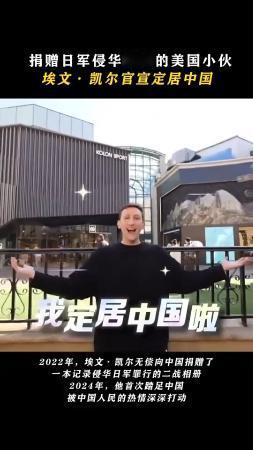 2022年,美国当舖老闆埃文·凯尔(Evan Kail)因向中国捐赠记载了南京大屠杀罪证的二战相册与中国结缘。此后,他不仅获中国国礼感谢,更多次来到中国,并登上央视春晚,为中国人熟知。3月15日,其在社交平台发影片表示,他决定定居内地,并称,在中国的生活「每天都有新花样」。影片也展现其在北京逛街、品尝烤鸭的生活,他也表示将尝遍各地美食。 除此之外,他亦将工作室设在天津。「埃文·凯尔官宣定居中国」的相关话题一度登上平台热搜第一,有不少网民留言表示「欢迎国际友人」「为中国人民做贡献的外国友人我们欢迎」,高sir也欢迎他,一起向世界讲好中国故事。