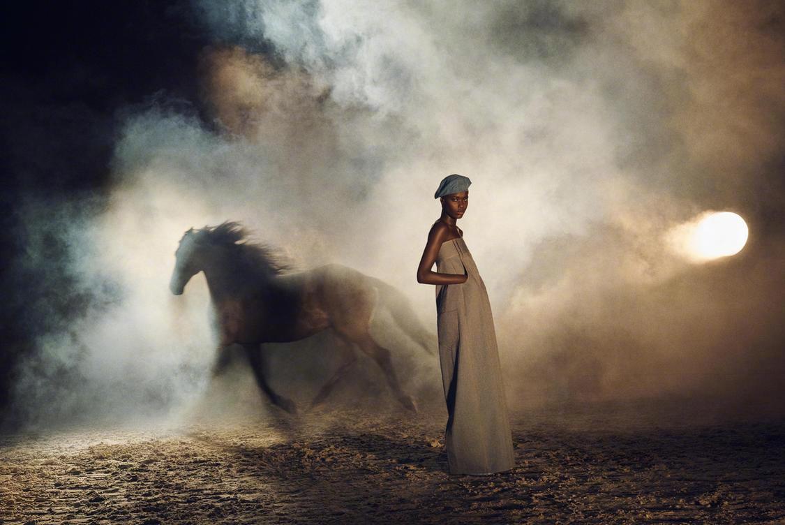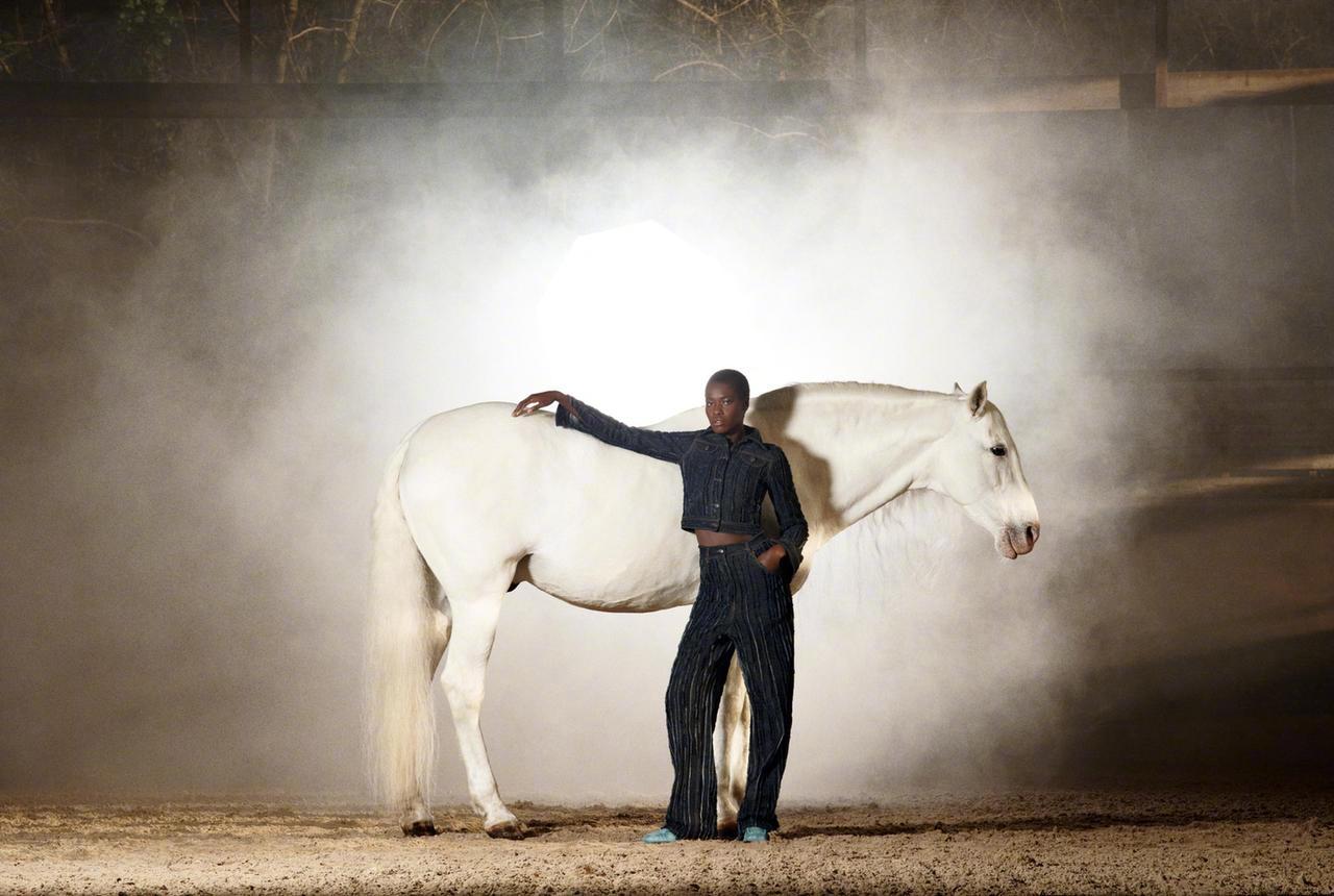 全新牛仔系列,从尘土飞扬的马厩,到烟雾缭绕的田野,质感在线的拍摄,完全不像高街品牌的样子。模特: Awar Odhiang & Jcqui Hooper 摄影: Ryan McGinley