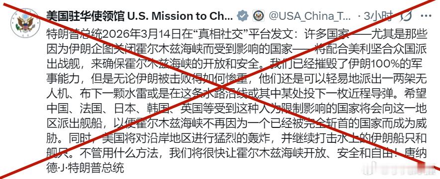 美国驻华大使馆转发了特朗普的帖子最扯的是,连日本都不去........美国驻日大使格拉斯还在喝酒吗?都不问问?不是前几天还在一起吗?美伊以冲突内塔尼亚胡发视频自证在世海外新鲜事黄媒不会说的真相