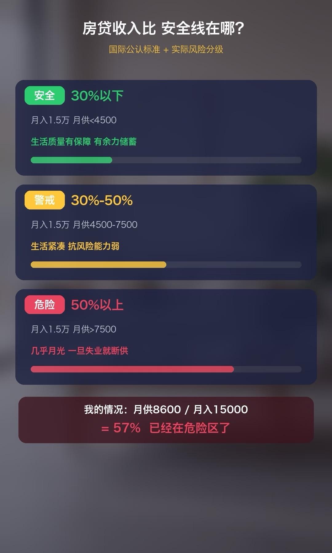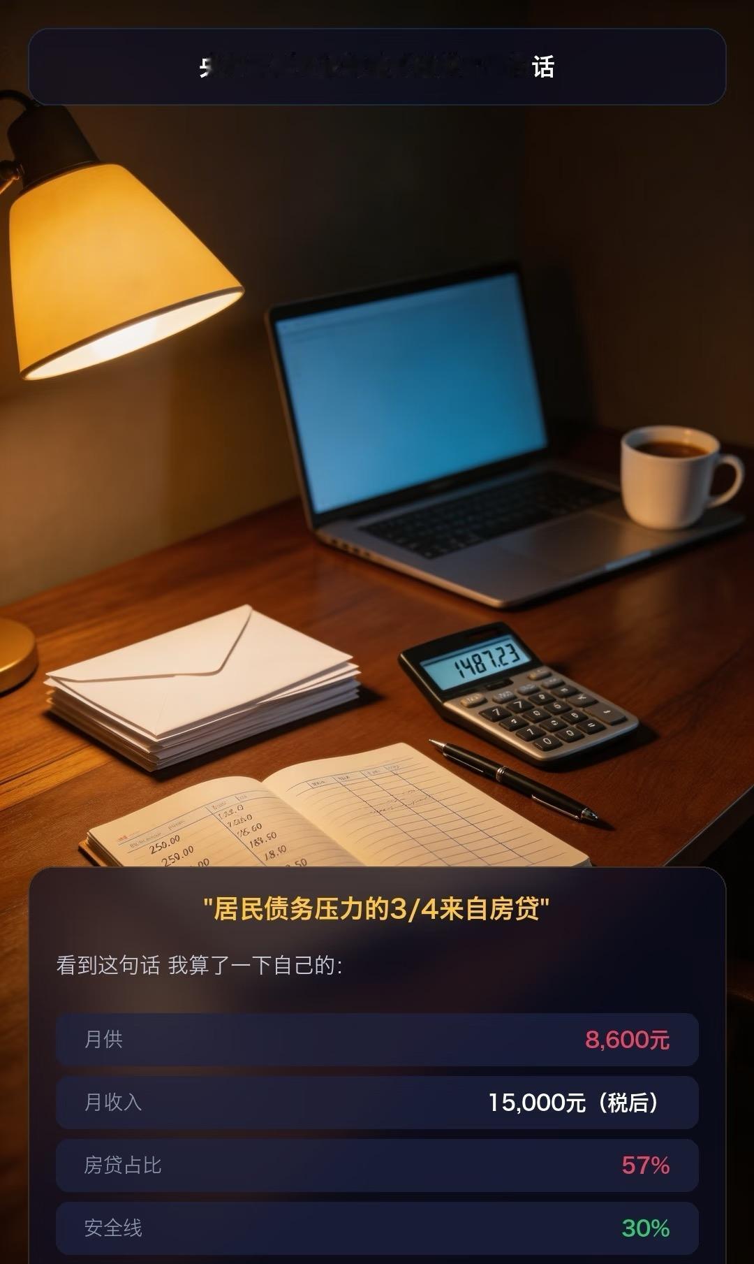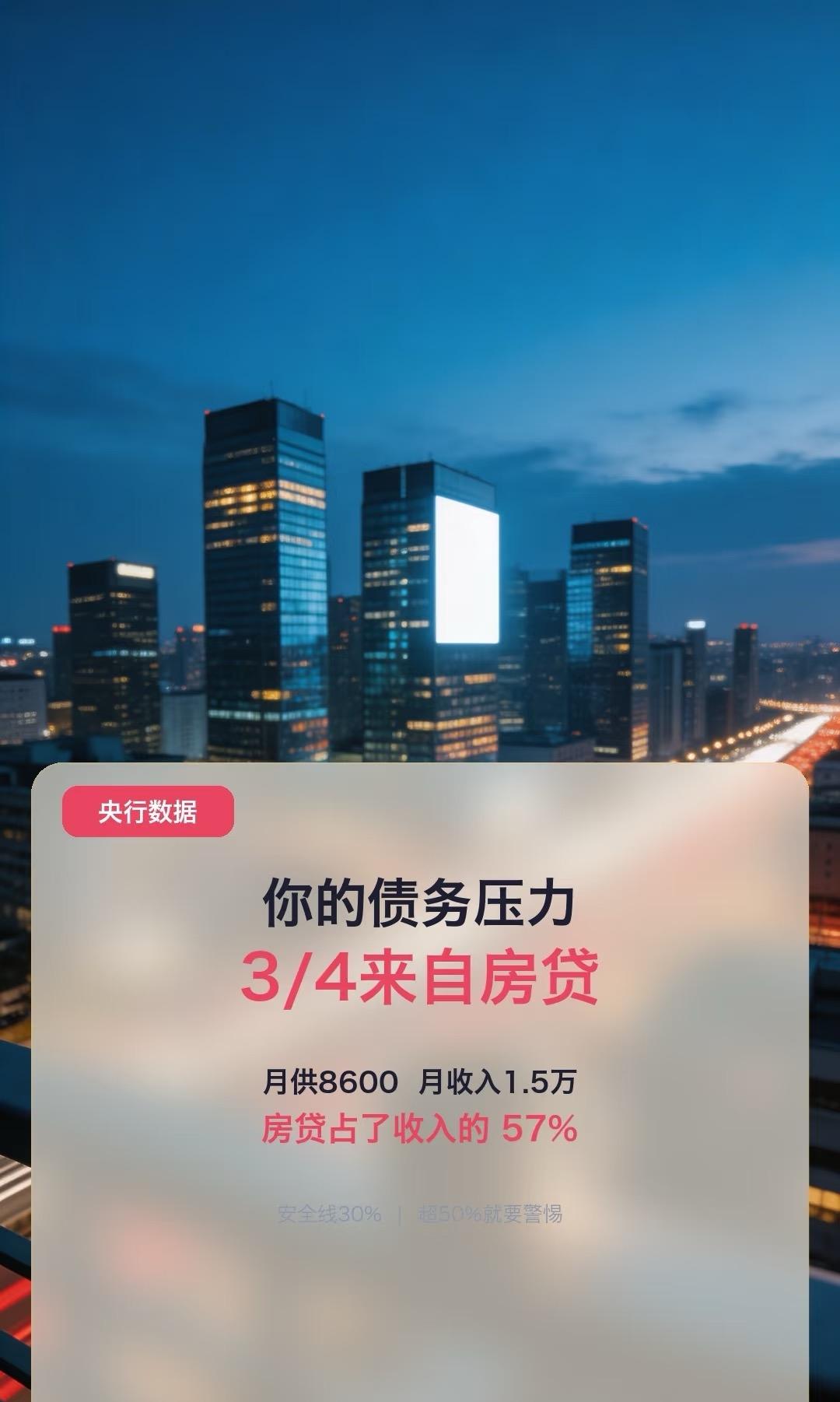 央行说居民3/4的债务来自房贷,真是说到心坎里了。我月供占收入快6成,早超了30%的安全线。建议先算清房贷收入比,超50%就得警惕,别盲目提前还贷,留点应急钱更稳妥。