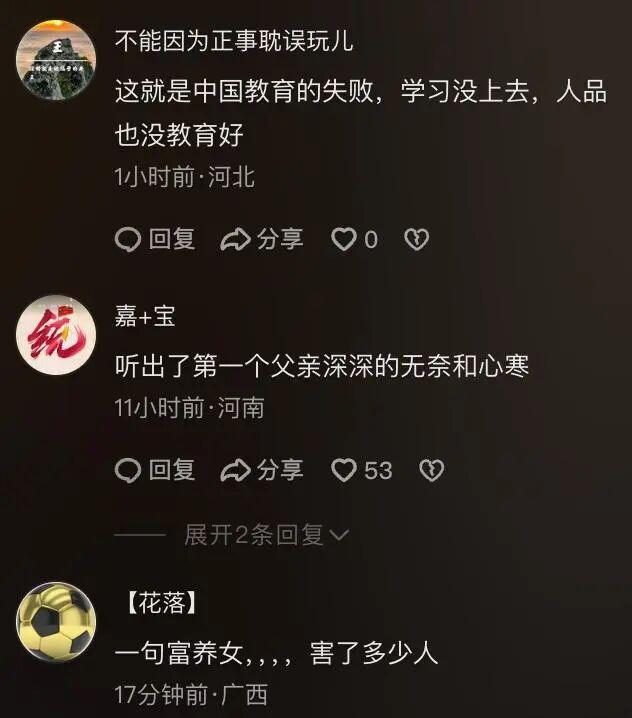 广西妈妈厨房痛哭:我养了25年的女儿,骂我“去死”,全网父母心碎背后是三代人逃不掉的困局 当那句“去死吧”从亲生女儿嘴里吼出时,广西这位母亲的世界彻底崩塌了。二十五岁的女儿毕业三年,终日躺平啃老,劝她找工作竟换来恶语相向。母亲缩在厨房门口崩溃痛哭的画面,像一根刺扎进了千万家庭的心。这不是孤例,而是无数中国家庭正在上演的无声战争。 啃老早已不是新鲜词。苏州二十九岁男子在家啃老六年,闹到报警调解;成都九十后小伙啃老十年,榨干父母退休金还理所当然。这些极端案例背后,藏着一个残酷真相:父母用爱的名义,亲手剪断了孩子飞翔的翅膀,却反过来责怪他们不会奔跑。 我们总怪孩子长成了“白眼狼”,可曾想过是谁喂大了他们的依赖?孩子想系鞋带,你嫌太慢;孩子想洗碗,你怕摔碎;孩子闯了祸,你一句“他还小”全揽下。你扛下所有压力,只求他专心读书,最后换来的,是他觉得全世界都该围着他转的理所当然。 这种全盘包办的爱,根本不是爱,而是裹着糖衣的慢性毒药。你替他挡住了所有风雨,也剥夺了他面对生活的能力。等到你老了,干不动了,他不会感激你的付出,只会怨恨你为什么不能再养他几十年。亲子关系,就这样在过度保护中异化成了债主与欠债人的冰冷计算。 但把所有板子打在父母身上,公平吗?这代年轻人面临的,是前所未有的社会压力。高昂的房价、激烈的竞争、一眼望到头的工作,让他们充满无力感。当努力看不到希望,躺平就成了最无奈的抵抗。这不是为啃老开脱,而是我们必须看见硬币的另一面。 真正的教育,从来不是培养一个只会考试的机器。让孩子分担家务,不是折磨,是教他责任;让他看见你的汗水,不是诉苦,是教他感恩;放手让他摔跤,不是狠心,是教他成长。爱的最高境界,不是永远把他护在身后,而是教会他如何面对这个世界。 当我们批判啃老时,也该反思:我们是否给了年轻人足够的机会和尊严?我们是否构建了一个努力就有回报的社会环境?家庭教育的错位与社会压力的叠加,共同酿成了这代人的困境。解铃还须系铃人,改变需要两代人的共同觉醒。 此刻,无数父母正看着那个紧闭的房门暗自神伤。别让爱变成枷锁,也别让无奈变成绝望。从今天起,学会放手,学会界限,学会让孩子在风雨里长出属于自己的翅膀。因为父母终将老去,而生活,终究要他自己去闯。 家庭教育反思 啃老现象