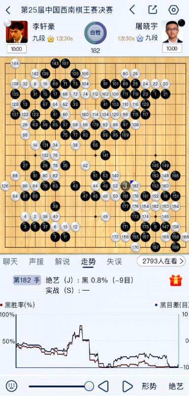 结果呢?李轩豪执白182手直接中盘取胜,根本没给机会。熟悉的快棋屠龙,熟悉的“轩工智能”,这杀气……太顶了。