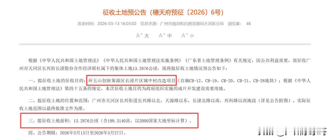 天河大手笔征地,涉及长湴村这些区域! 近日天河发布公告称,将征收位于环五山长湴村26.2万㎡的集体土地,用于成片开发。 具体范围涉及长湴东街、长湴小学、长湴综合市场等,靠近地铁的集体土地, 这次征地规模也挺大的,里面就包含了村民私宅最密集的地方,由于大部分都承包了给二房东,上百栋房屋都处于出租状态,虽然征收有点困难,但是长湴村此次真的要动真格了! 根据天河城中村改造计划,今年也会加大进度,多个项目迎来新突破。 而长湴村的首批复建房、周边道路以及公配建设也要有实质性进展,所以长湴村这次大规模的征地,预计年内应该会进行清租清退工作。