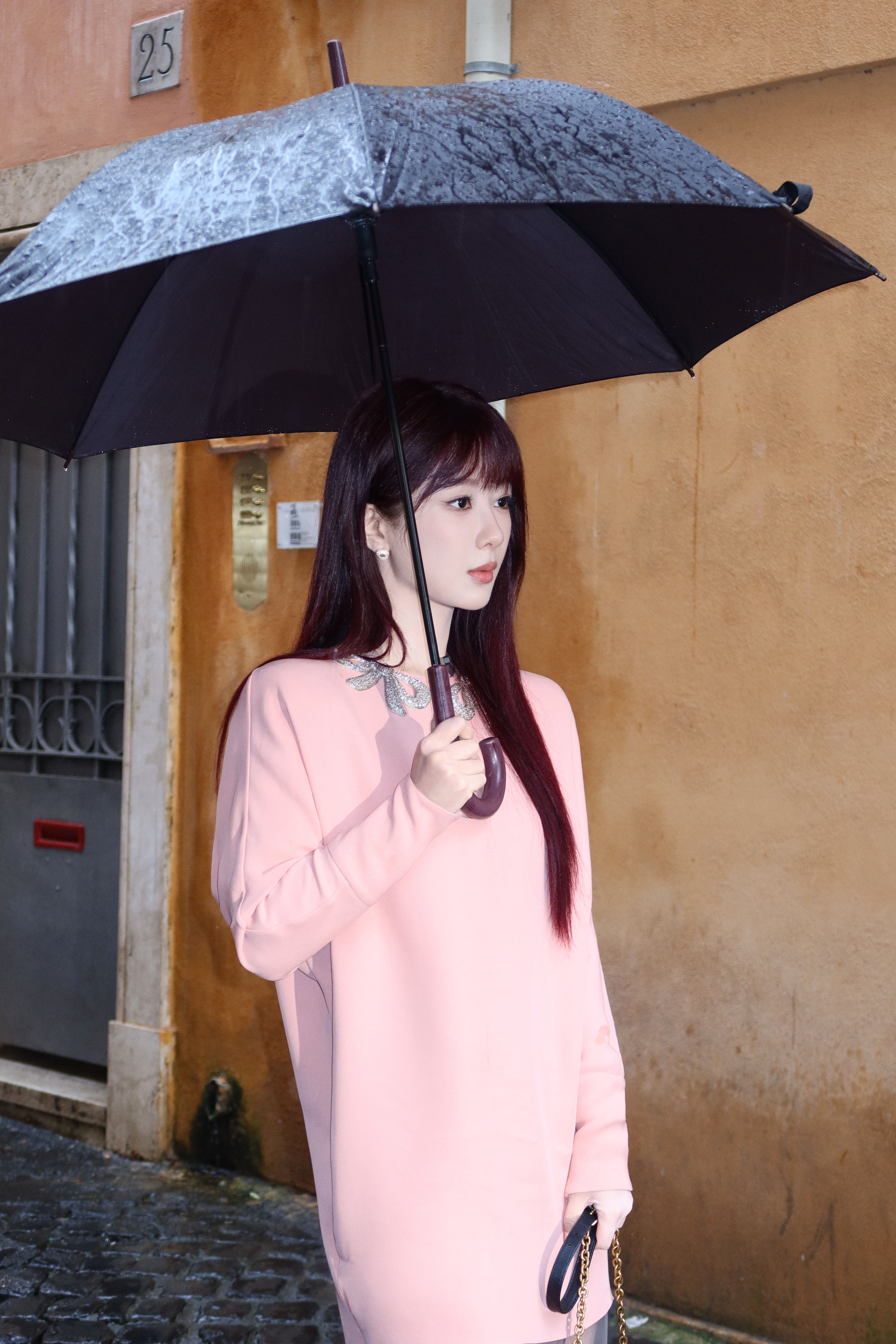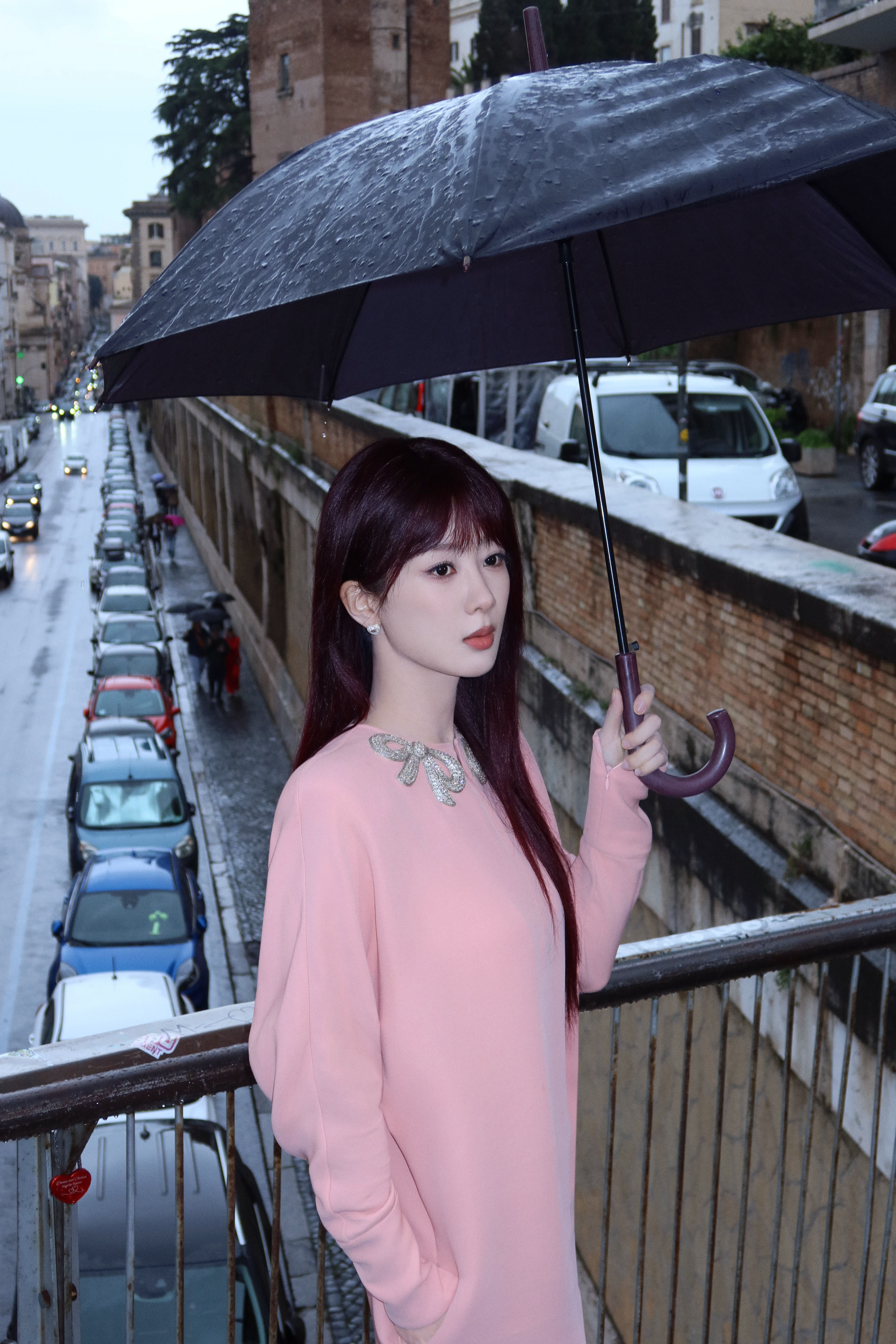 刘亦菲这条裤子挺养生,毕竟降温了肚脐眼必须护住啊
