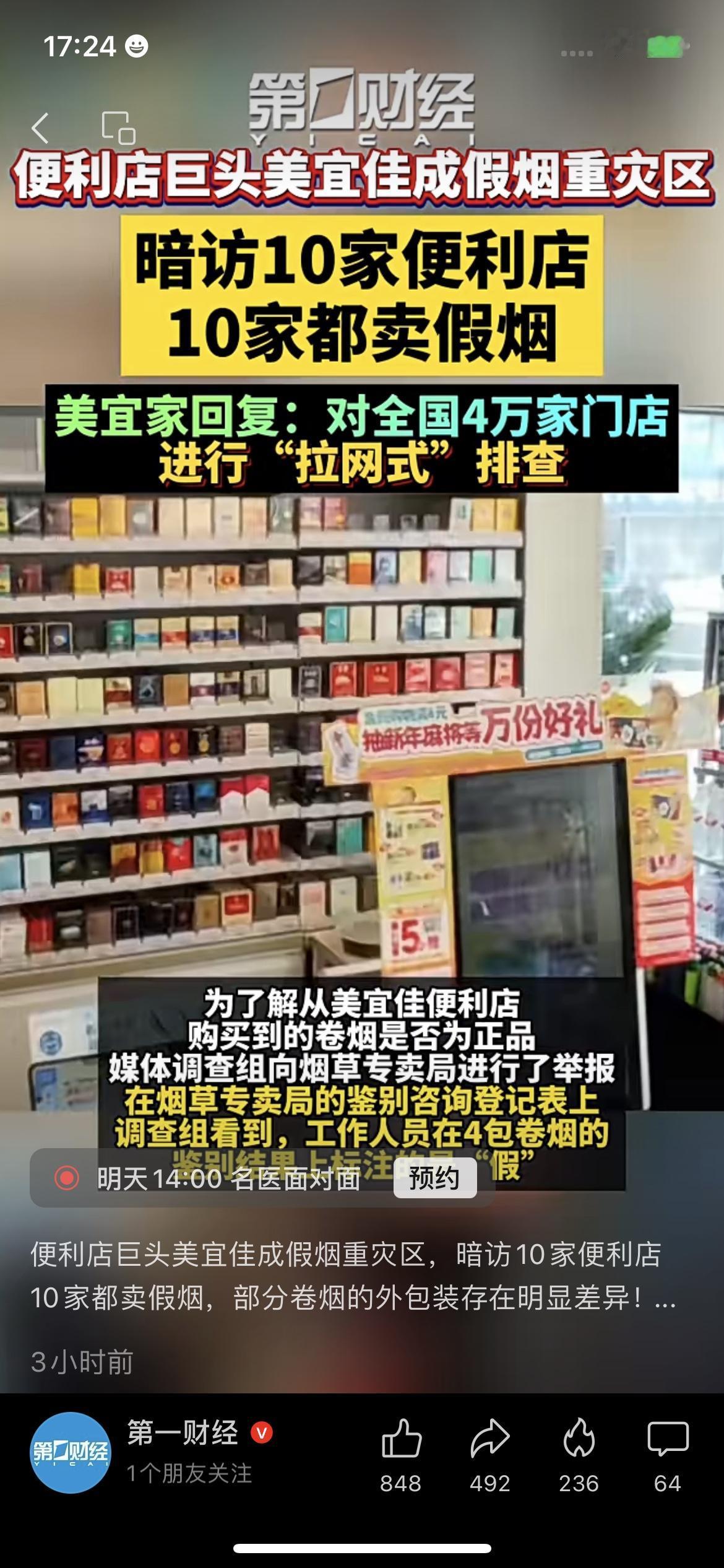 离谱!暗访10家美宜佳,10家都卖假烟!便利店巨头成假烟重灾区 媒体暗访10家美宜佳便利店,结果10家都查出假烟,烟草专卖局鉴别后直接标注为假,部分假烟外包装都有明显差异。 作为全国门店超多的便利店品牌,出现这种情况实在不应该。目前品牌方已经回应,要对全国门店做拉网式排查。 但对消费者来说,平时随手买包烟都要提心吊胆,确实很闹心。假烟不仅口感差,还可能危害健康,更是违规行为。 以后买烟尽量去正规烟草店,别图方便踩坑。 美宜佳假烟 便利店乱象 打假