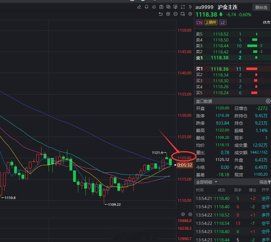 你就说铜和铝的空怎么样?黄金说反弹1117附近空,是不是都下来了!喜欢我交易节奏