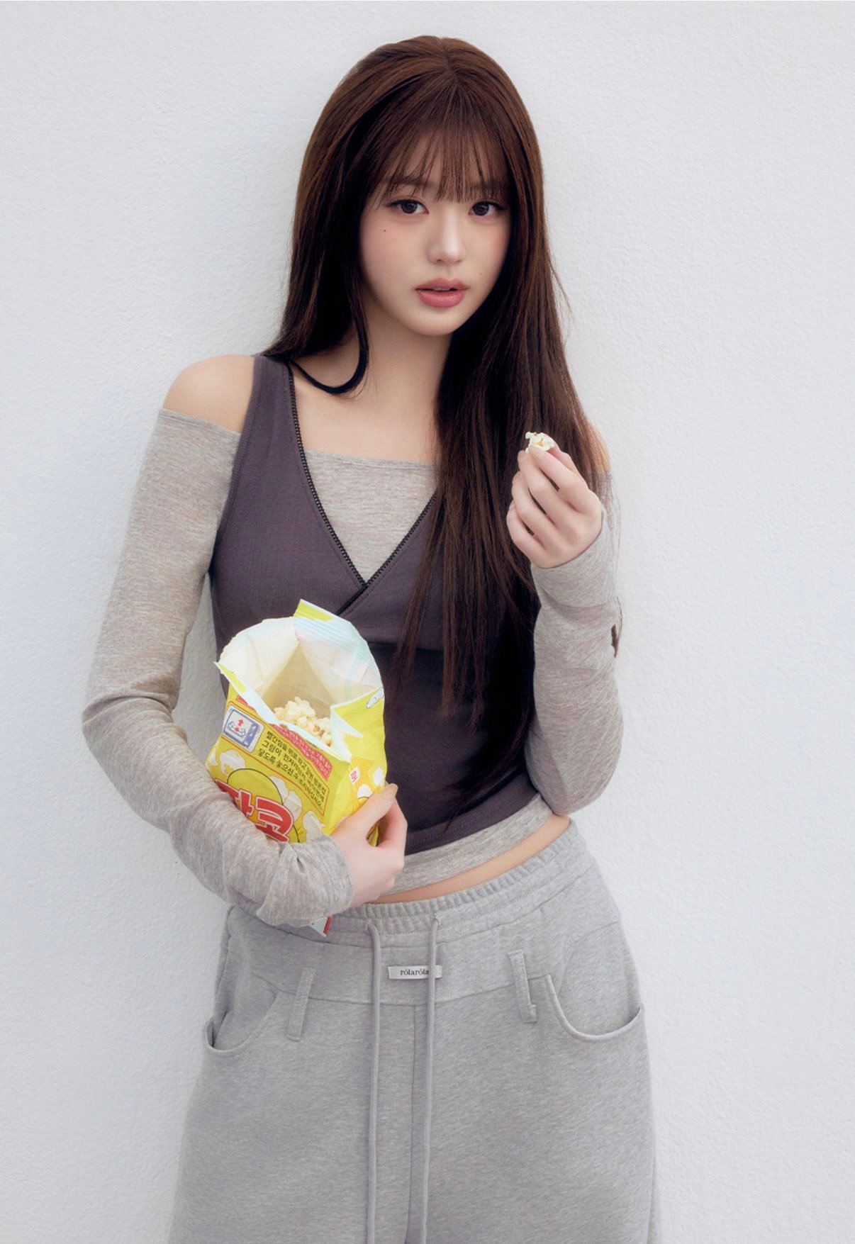 刘亦菲这条裤子挺养生,毕竟降温了肚脐眼必须护住啊