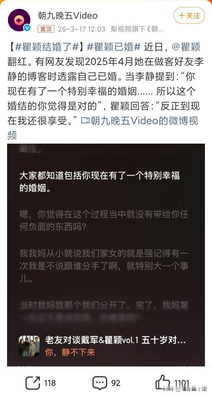 瞿颖已婚就是个谣言,没有领证、没办婚礼,这根本算不上婚姻,顶多就是同居生活,婚姻是神圣的,不要随便玷污这个词。 当然这样的生活未必不能长久,如果两人感情特别好,也许会比很多的婚姻保持的更久。 这样的对象,不是丈夫,不是妻子,而是真正的人生伴侣,但是,以瞿颖的性格,感觉也撑不了几年,不信我们拭目以待吧!