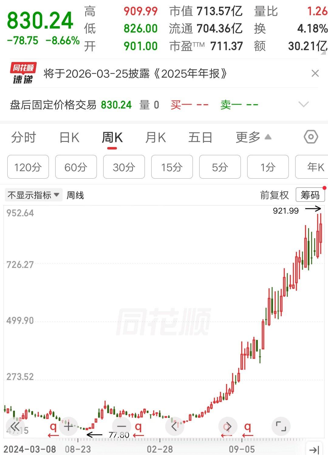 半导体板块最牛的票诞生了,股价从77.8元涨到921.99元,一年半的时间涨幅十倍以上。上涨周期够长涨幅够大,妥妥的趋势大牛股一枚呀。该票凭啥受到资金追捧呢? 2024年利润亏损613.4万,业绩太烂了吧,绩差股无疑了。可是再看2025年利润赚了1.909亿,同比暴增32倍多。业绩扭亏为盈,而且是大超预期呀。 2024年报披露,机构数量257家。到了2025中报,机构数量飙到了409家。 该票的核心营收来源, AI数据中心爆发:CW光源(800G/1.6T光模块)放量,收入占比大幅提升。 能在该票上赚大钱的人,只有两类。一类是机构和专业投资者,他们具有专业的研究能力,能够提前预期业绩爆发。一类是散户,拥有一颗想赚大钱的野心,拿着不动内心坚定。 有些散户可能中途上车了,赚了小钱就卖了,很多人都是这样。最大的一波是主升浪,只喝了一点汤。 现在股价在历史高位,风险远大于收益了,所以千万不要追高。错过就错过了,没那个发财的命,要认命呀。