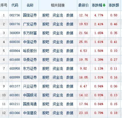 什么情况?今天头部券商股强势崛起,逆势上涨,涨势喜人! 券商股涨幅排行榜前十席中有七席是头部券商股。涨幅排行榜前四名全是头部券商股。国信证券收盘大涨4.77%,居券商股涨幅排行榜第一名,广发证券收盘上涨2.41%,居券商股涨幅排行榜第二名,东方财富收盘上涨1.65%,居券商股涨幅排行榜第三名,中信证券收盘上涨1.61%,居券商股涨幅排行榜第四名。华泰证券、招商证券、中国银河涨幅分别居券商股涨幅排行榜第六、八、十名。 头部券商股今天集体发飙最有可能原因是聪明钱在进行高低切换的移仓换股。东方财富昨天成交金额仅30亿,今天成交金额放大到91亿,中信证券昨天成交金额29亿,今天放大到57亿,两大龙头券商股放量上涨,明显是有资金在高低切换,这无疑是一个好兆头。