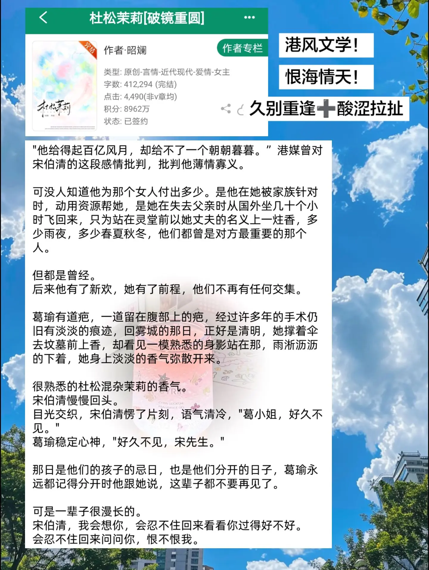 呜呜这本真的是恨海情天文学了!破镜重圆,全程酸涩感绝了!恨和爱同在,真的会看哭
