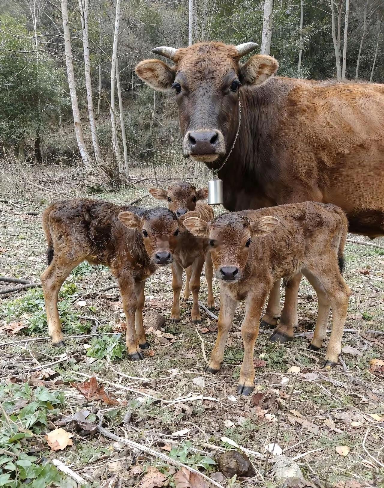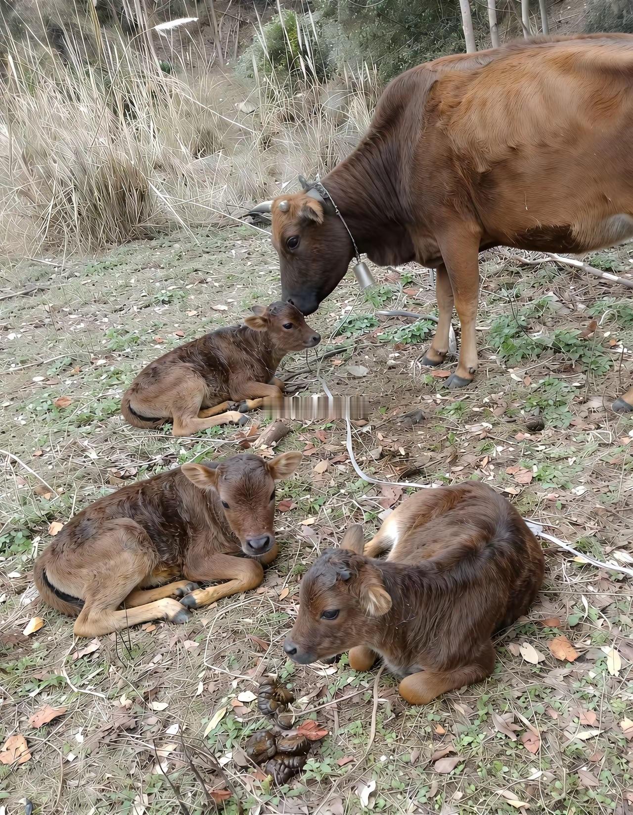 牛都是一胎,从没听说过有三胞胎的牛犊子