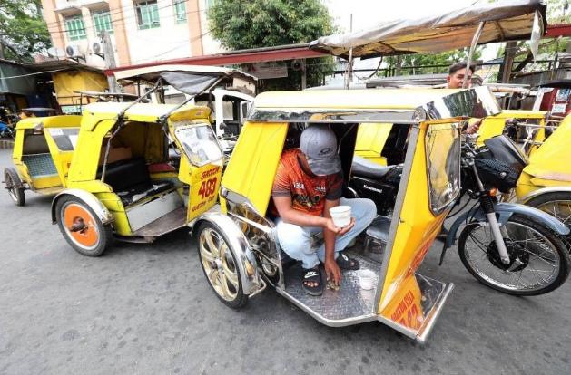 菲律宾奎松市的三轮车正在候客,油价高企的时候,估计他们的生意会很火爆