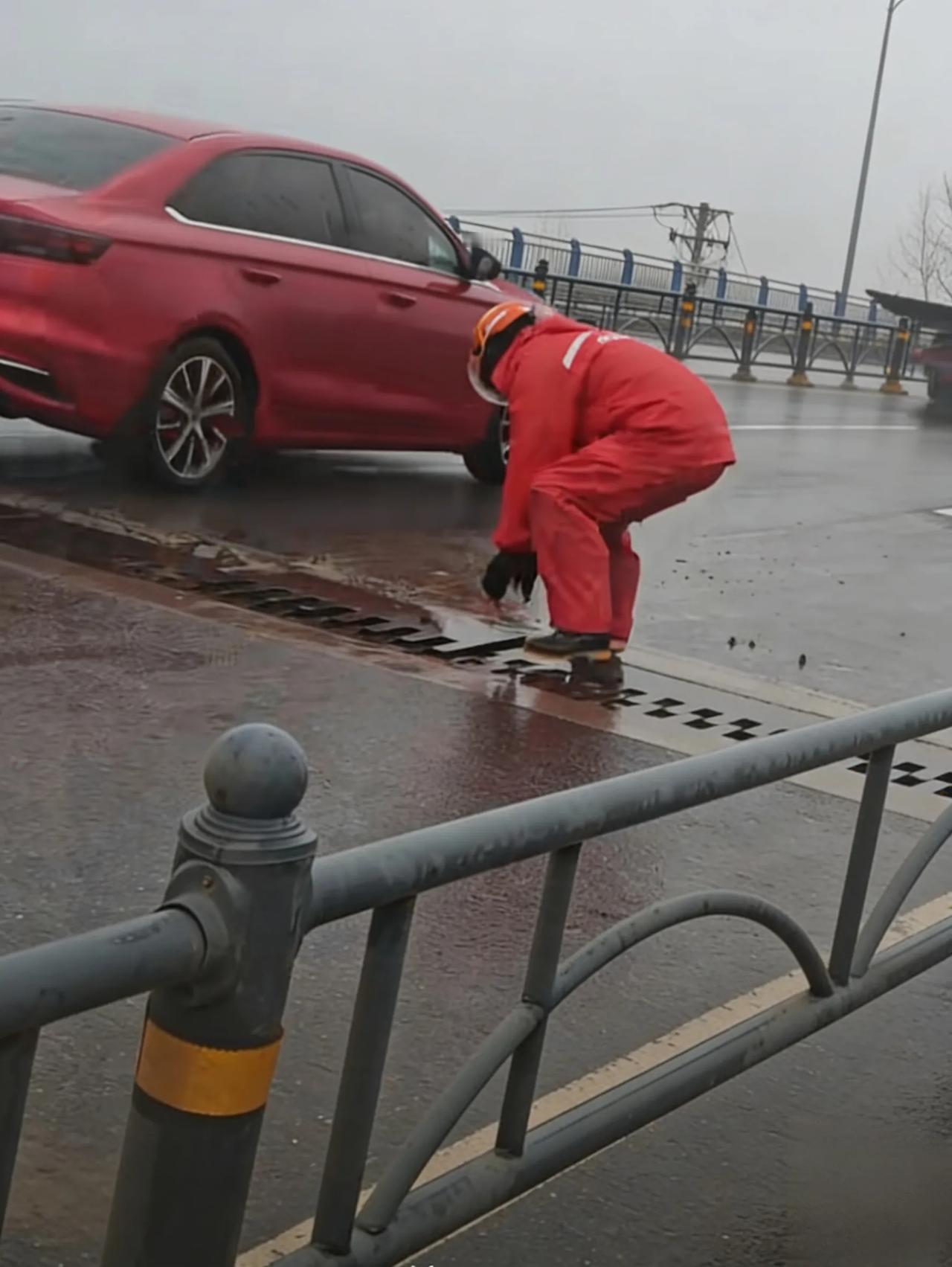 武汉桥面钢板翘起阻路 骑手徒手复位几十斤钢板获赞 3月15日下午1点多,武汉江夏金龙大桥,雨下得又急又密,雨刮器开到最快都看不清路。车流呼呼往前冲,谁也没发现,桥面伸缩缝那块钢梳齿板,已经被大车碾得翘起来20厘米,像一把锋利的“拦路虎”,死死横在路中间。 这可不是普通铁皮,足足四五十斤重,硬邦邦、沉甸甸。雨天视线差,车速又不慢,一旦有车没看清轧上去,轻则爆胎,重则侧翻、连环撞,后果不敢想。不少司机开到跟前才发现,猛打方向避让,看得人手心冒汗。 就在这危险关头,一辆外卖电动车慢慢靠过来,骑手没有绕行,直接把车停在安全地带,穿着红色雨衣,一头扎进雨幕和车流里。他就是京东外卖骑手焦浩,34岁,辽宁人,中共党员,当了12年兵的退伍老兵,也是江夏“红骑侠”志愿者。 焦浩走到钢板边,伸手一拽,纹丝不动。钢板又滑又重,雨天更难发力。他没退缩,蹲下身,双手死死扣住钢板边缘,把全身重量都压上去,咬牙猛一使劲!雨水顺着帽檐往脖子里灌,衣服湿透贴在身上,他顾不上擦脸、顾不上喘口气,只想着赶紧把隐患除掉。 一下、两下、三下,他一点点把翘起的钢板往回推,对齐卡槽后,又反复调整边角,生怕还有一点翘头。最后,他用脚狠狠踩了三四下,直到钢板严丝合缝、稳稳当当,才直起身,抹了一把脸上的雨水,拍了拍手上的灰,默默骑上车继续送餐。 整个过程只有一分多钟,没有豪言壮语,没有丝毫犹豫。做完好事,他没留名、没邀功,只是拍了张照片发到“红骑侠”群里,提醒市政部门来加固。当天晚上,工作人员就赶到现场彻底修复,桥面恢复安全。 事后有人问他怕不怕,焦浩说得实在:“当过兵,见不得危险摆在那,不管谁路过都会伸手。车多、雨大,真出事就晚了,我只是做了该做的。” 没有惊天动地,只有挺身而出。几十斤钢板,是重量;雨中挺身,是担当。平凡的外卖骑手,用最朴素的举动,守住了一路人的平安,这就是普通人最了不起的英雄模样。 你在路上遇到过这样暖心的陌生人吗?为这位退伍不褪色的骑手大哥点个赞! 武汉正能量 外卖骑手 凡人英雄 退伍不褪色 信息来源:长江日报、极目新闻 网络截图
