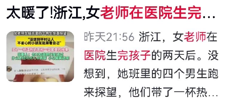 别用分数,否定一个孩子的善良 老师产后第二天躺在医院,最让她意外的一幕发生了: 来看望她的,不是乖巧懂事的班干部,不是成绩优异的优等生,而是班里最调皮、最让她操心、最不省心的四个男孩。 他们上课爱动、作业拖沓,没少被批评,没少惹麻烦,却凭着一腔真心,不知道病房号,一路问遍医院,捧着温热的奶茶、提着家里的水果,悄悄来到病床前。 平日里上蹿下跳的少年,进门时轻手轻脚,说话细声细气,满眼都是心疼与欢喜。 老师瞬间泪目:原来你真心待过的孩子,哪怕被你严厉管教,也永远记得你的好。 教育最美的模样,从来不是满分试卷,而是真心换真心,善良遇温柔。 分数只是一张纸,人品才是一辈子。 那些不被成绩定义的孩子,心里装着最滚烫的教养与感恩。 对此,你怎么看? 教育真谛 师生情 暖心正能量 育儿感悟