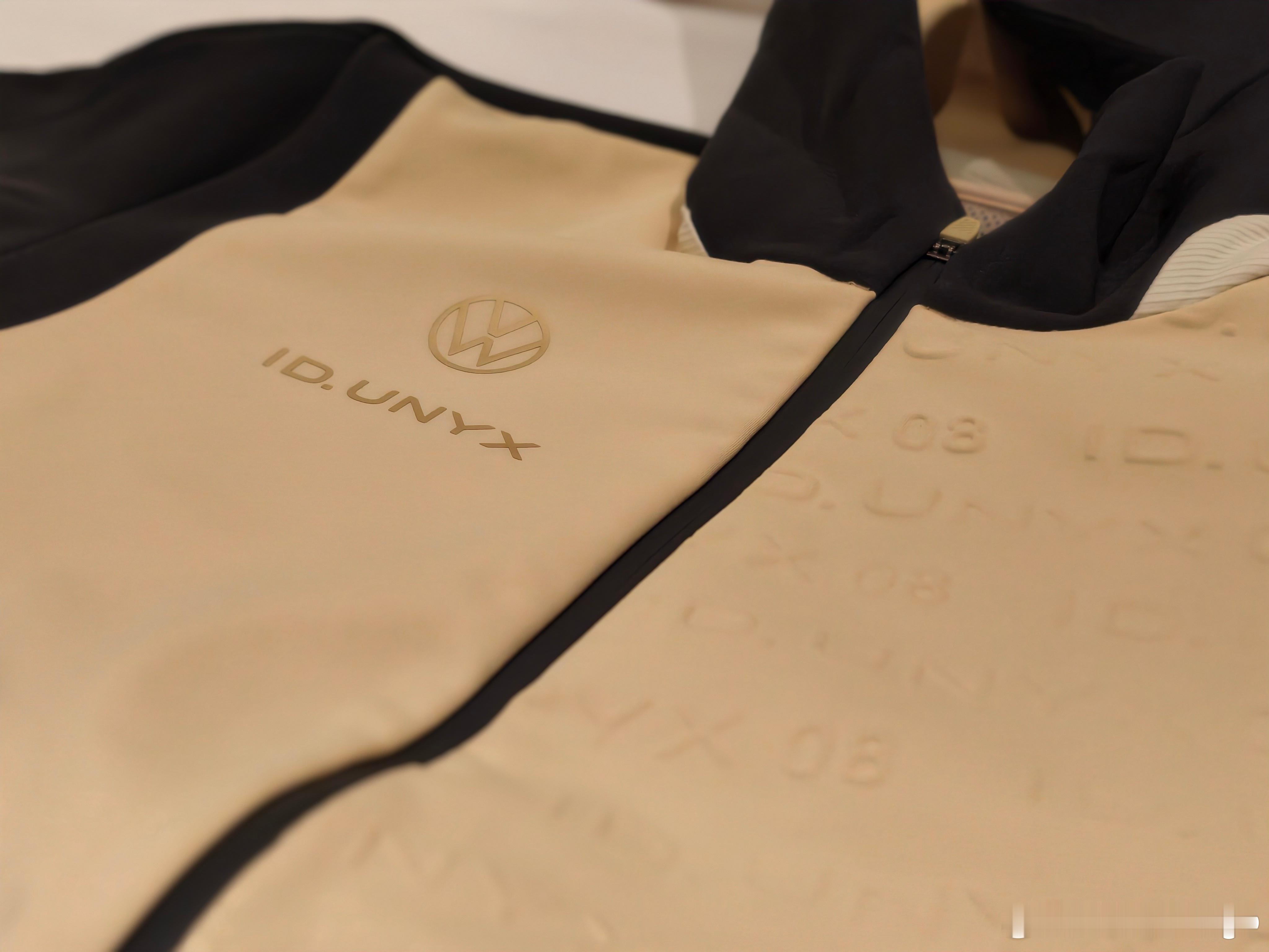 不得不说,与众的品牌色「金标」中的金色一致性做得很好,试驾会的挂牌也是统一的品牌色系,包括送的这件很酷的夹克也是一样的色系。